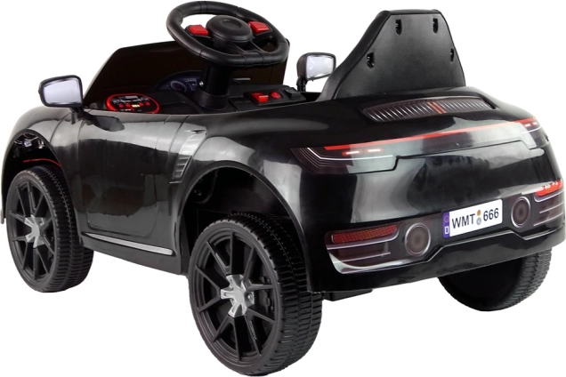 El elegante coche negro está diseñado para los pequeños amantes de la conducción. Detalles como el volante, los retrovisores y las líneas deportivas estimulan la imaginación infantil y aportan al vehículo un aspecto auténtico.