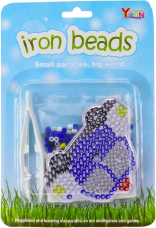 El set ofrece cuentas de colores que permiten crear un patrón con las pinzas incluidas. De este modo, los niños practican la coordinación mano-ojo y la precisión del movimiento. Tras terminar el patrón, cubre las cuentas con un papel especial y plancha. El resultado es una imagen duradera y colorida del coche que puede servir como decoración o como un regalo original.