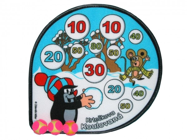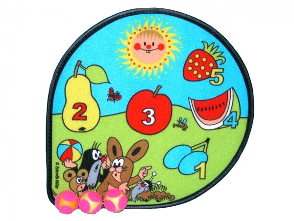 Divertida diana con el motivo de KRTEČEK y sus amigos para lanzar de forma segura en casa y al aire libre. Gracias a la superficie de velcro y a las tres pelotas incluidas, los niños practican precisión, competitividad y motricidad sin riesgo de dañar los muebles.