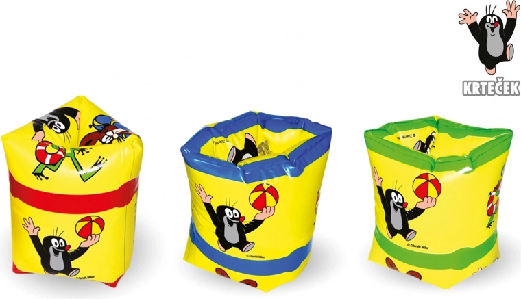 Los manguitos enrollables con el popular motivo de Krtek ayudan a los niños a mejorar sus habilidades de natación y, al mismo tiempo, a disfrutar del juego en el agua. Inflado sencillo y colocación cómoda en el brazo garantizan que los manguitos se mantengan firmes sin limitar el movimiento de los brazos.