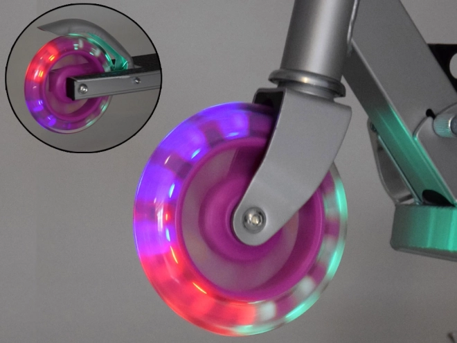 Este patinete infantil plegable combina ligereza, resistencia y seguridad. Las ruedas se iluminan automáticamente al rodar gracias a la energía magnética, por lo que no se necesitan pilas. La estructura metálica de aluminio y acero ofrece larga vida útil y bajo peso para una manipulación sencilla.