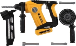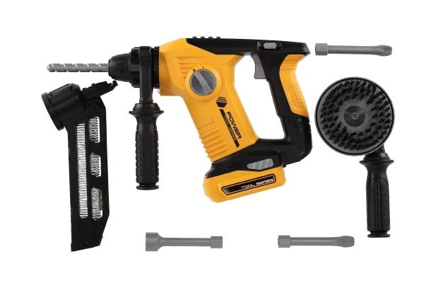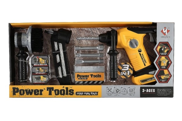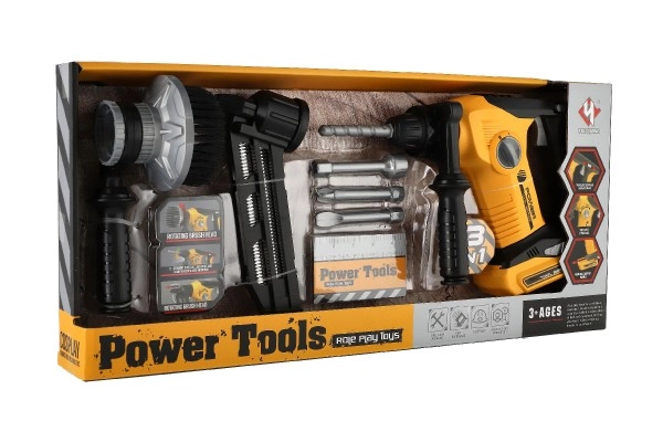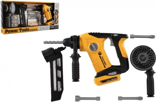 El taladro percutor infantil está perfectamente diseñado para pequeños manitas que quieran participar en reparaciones y actividades de construcción. El set incluye puntas intercambiables, un cepillo giratorio y una clavadora, lo que ofrece a los niños muchas posibilidades de juego.