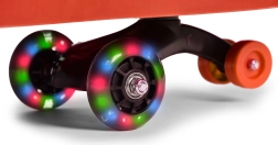 Las ruedas se iluminan con LEDs multicolor durante la marcha. Aumentan la visibilidad al anochecer y convierten cada paseo en una experiencia atractiva.