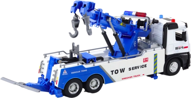 La cabina de la grúa está fabricada en metal, lo que aumenta su resistencia y aspecto auténtico. La robustez y la atención al detalle también se reflejan en las ruedas de goma, que garantizan una excelente adherencia a las superficies. Gracias al mecanismo de arrastre, la grúa avanza con una ligera presión, lo que añade dinamismo al juego.
