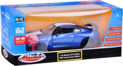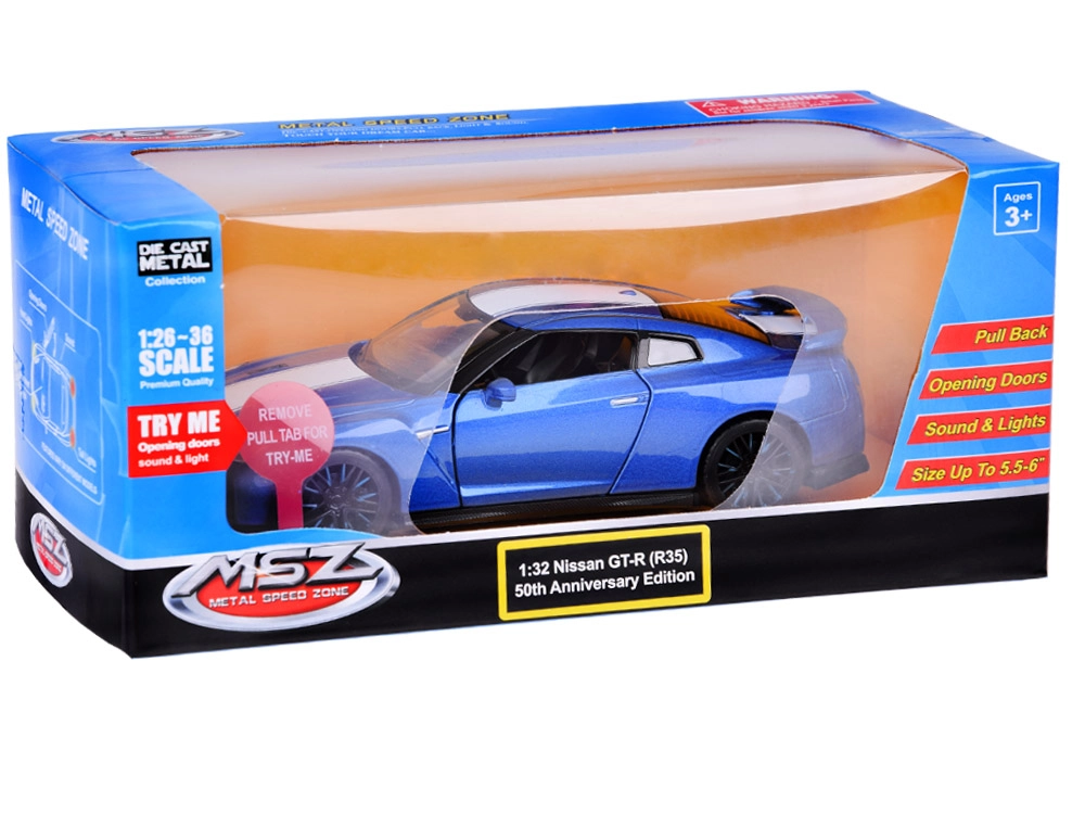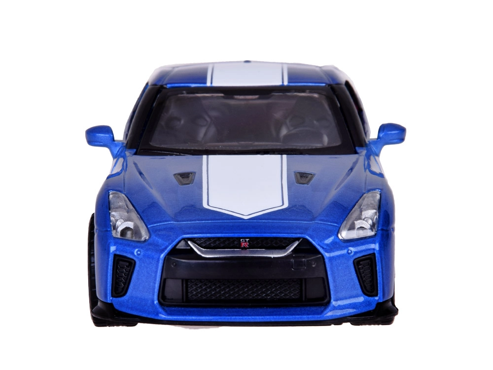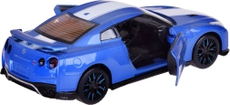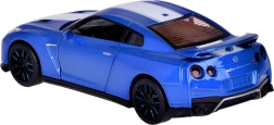 Descubre el icónico NISSAN GT‑R en elegante color azul como un modelo die‑cast 1:32 de alta calidad. La carrocería metálica, las ruedas de goma y el chasis de plástico aportan al coche un aspecto realista y resistencia durante el juego. Gracias al mecanismo Friction power, basta con tirar del cochecito sobre una superficie lisa y soltarlo.