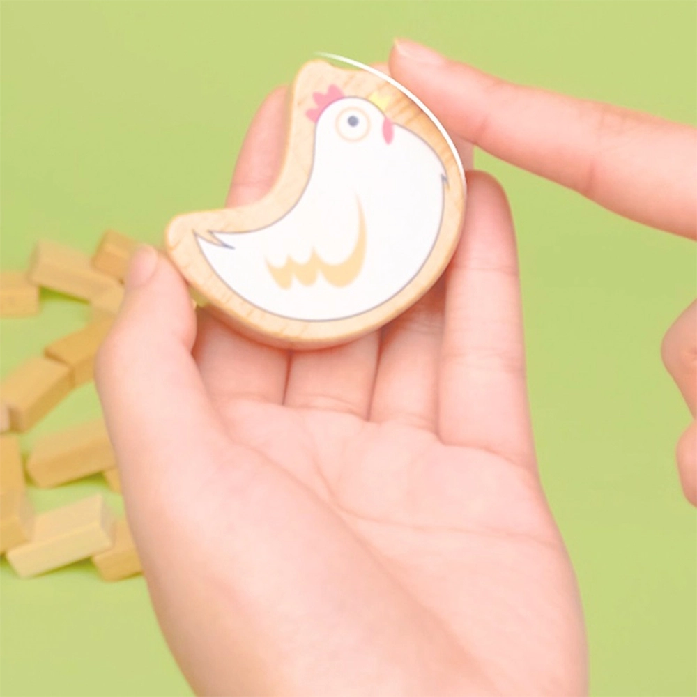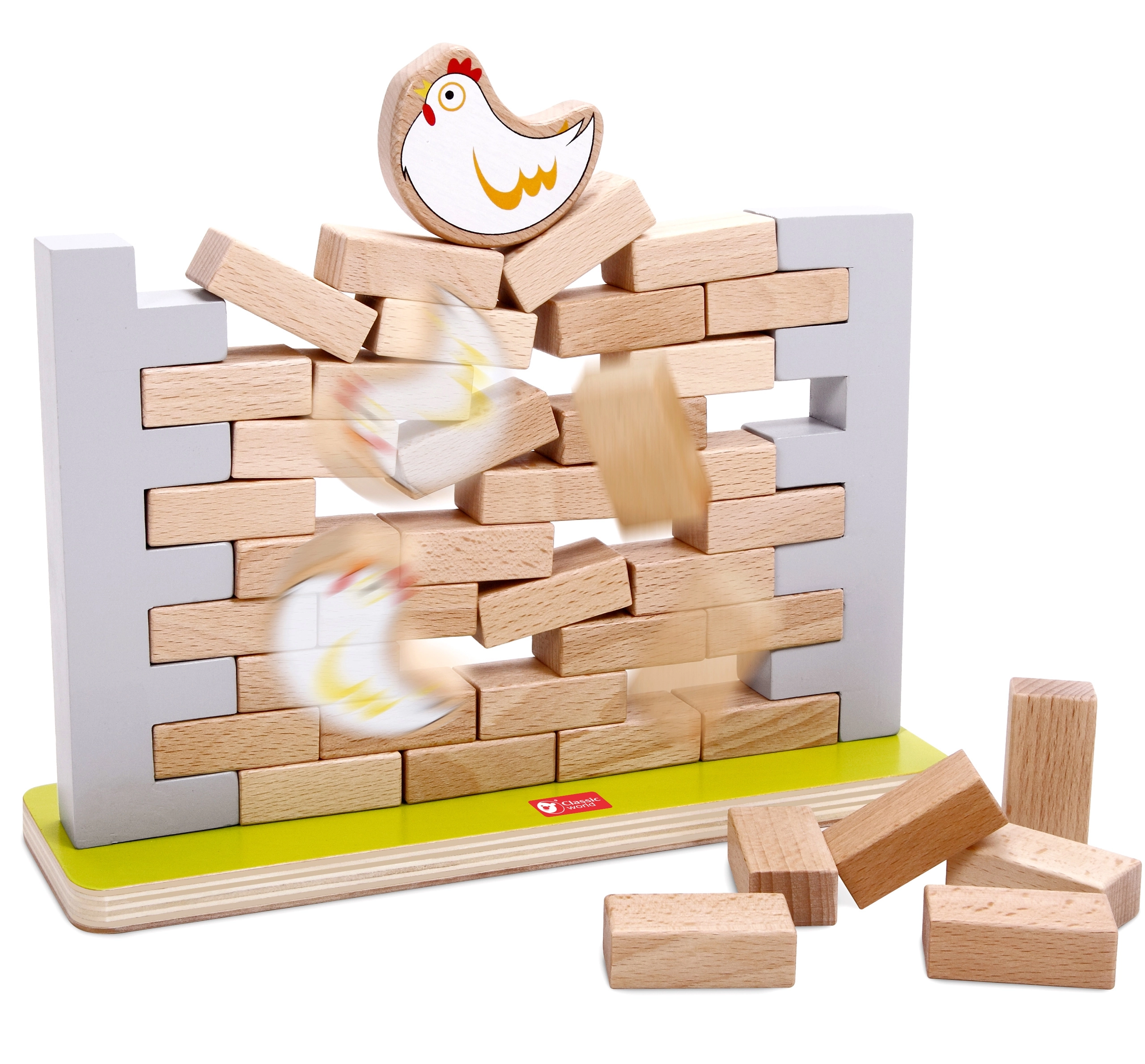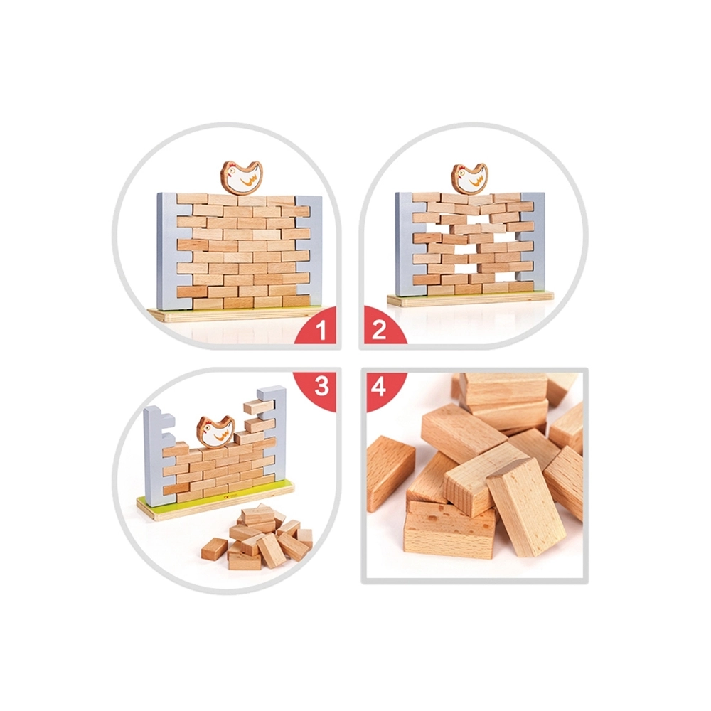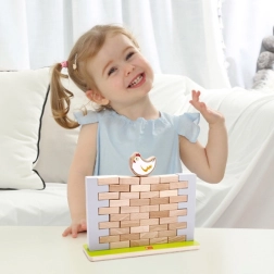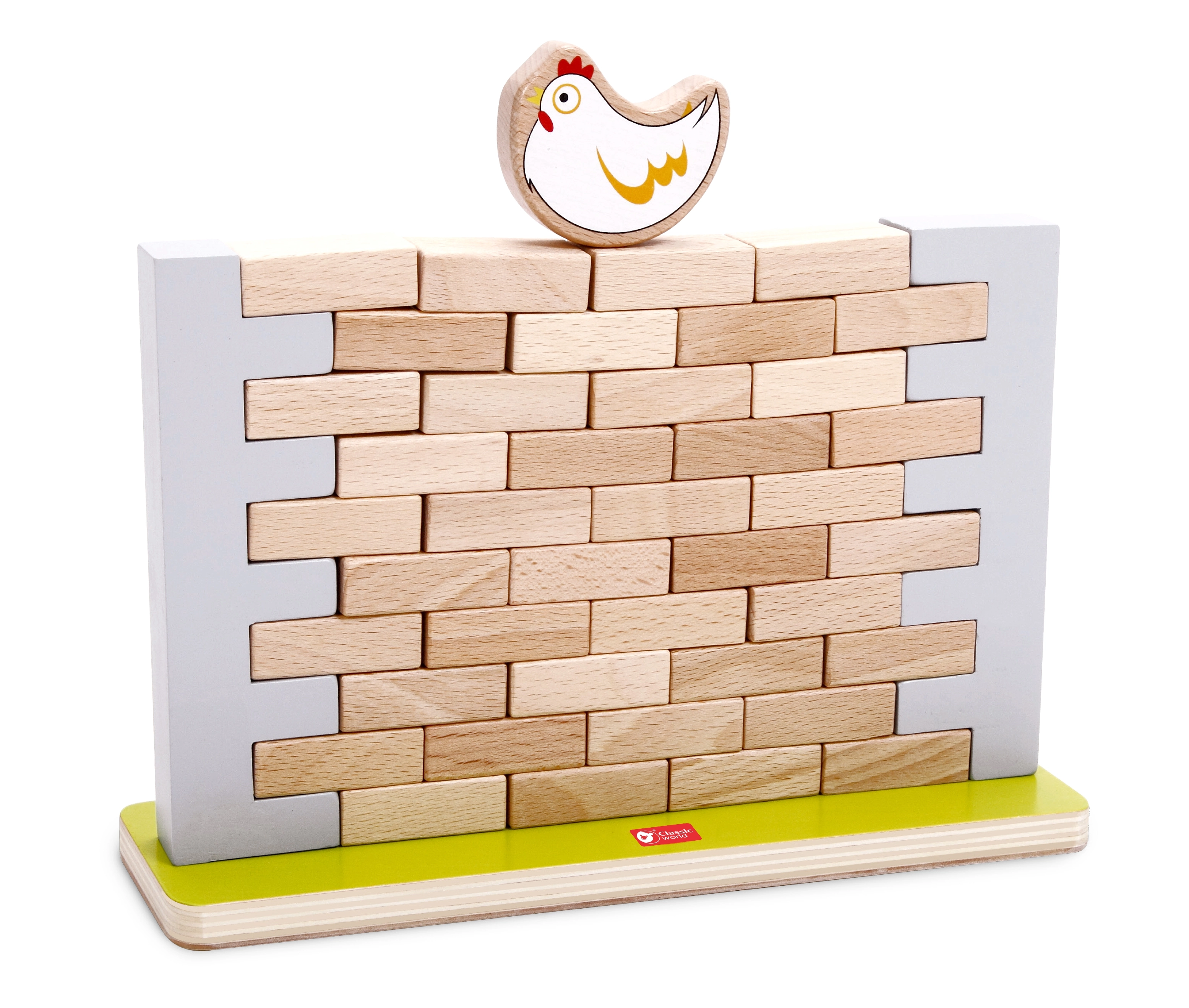 Este juego de equilibrio de madera de alta calidad ofrece reglas sencillas y mucha emoción. El objetivo es sacar los ladrillos del muro sin que caiga la gallina situada en la parte superior. Los niños practicarán la paciencia, la concentración y la resolución de problemas mientras se divierten con padres o hermanos.