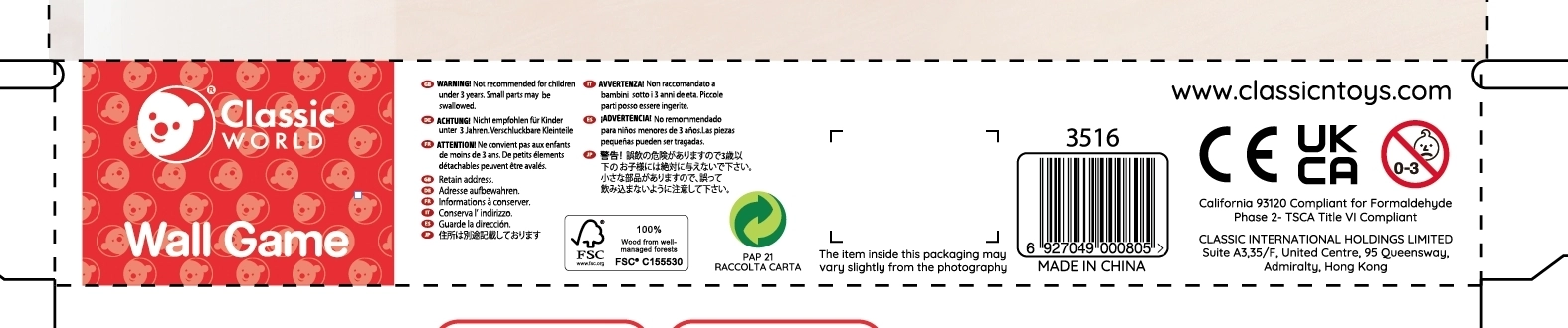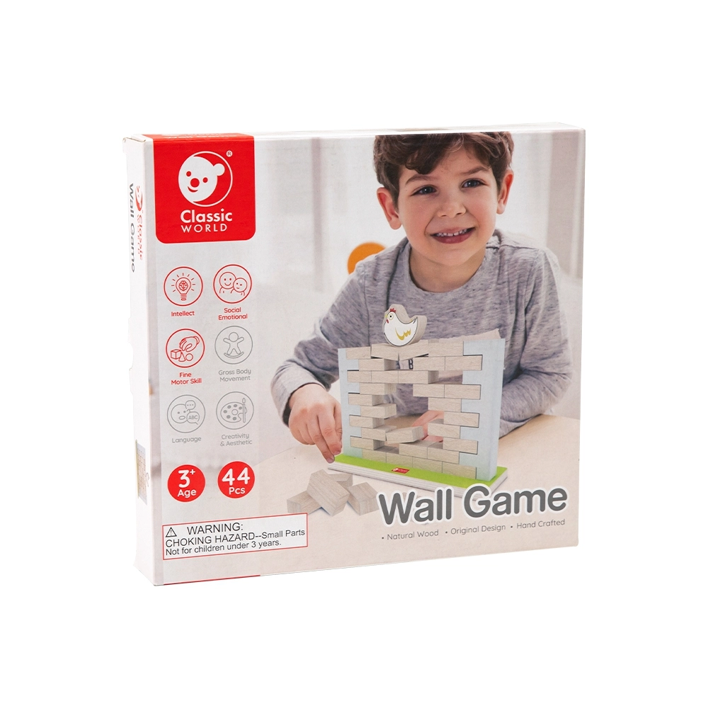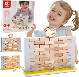 Divertido y educativo juego de equilibrio para niños de la marca CLASSIC WORLD. Construye un muro estable con los “ladrillos” de madera, coloca la gallina en la cima y extrae poco a poco los ladrillos sin que la estructura se derrumbe. El juego desarrolla la motricidad fina, la coordinación mano-ojo, el pensamiento lógico y la estrategia, y es ideal para niños a partir de 3 años y para toda la familia.