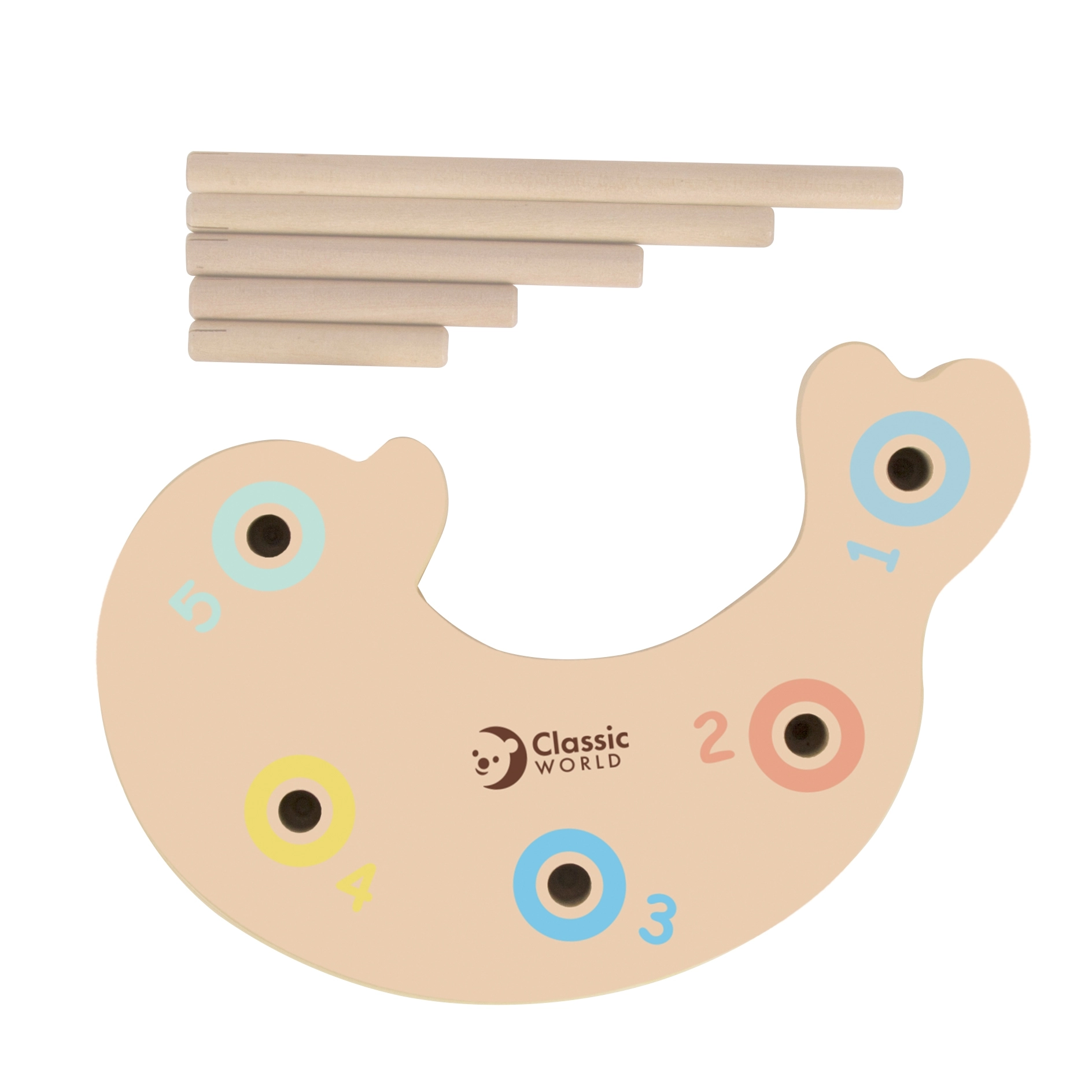 Coloca los peces sobre la figura de equilibrio y mantén la estabilidad. Una diversión ideal para niños y padres que desarrolla la concentración y la motricidad fina.