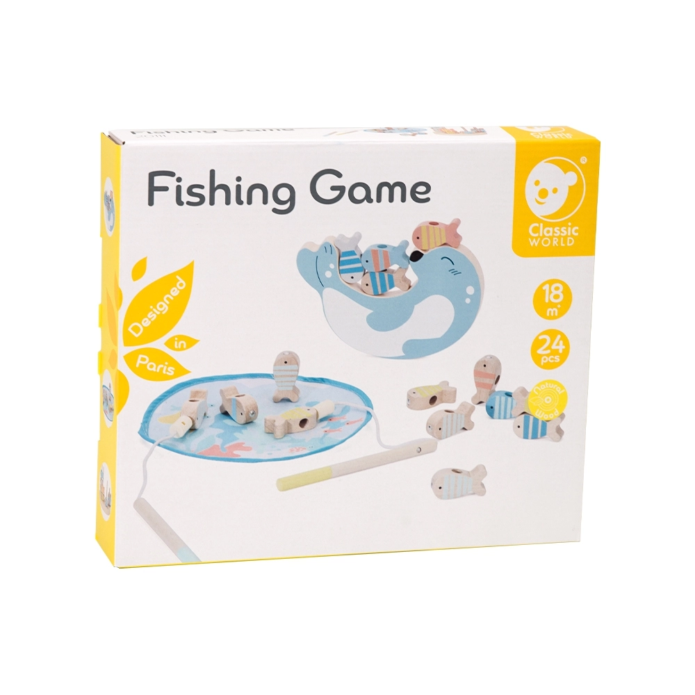 Descubre un juego divertido y educativo para niños: la pesca de peces de madera de CLASSIC WORLD. Este ingenioso set ofrece 3 juegos en 1: pesca magnética, juego de equilibrio y clasificación de peces por colores y números. Favorece la motricidad fina, la coordinación mano–ojo, la concentración y el aprendizaje de colores y números. Fabricado en madera de alta calidad con colores atractivos, ideal para la diversión en familia.