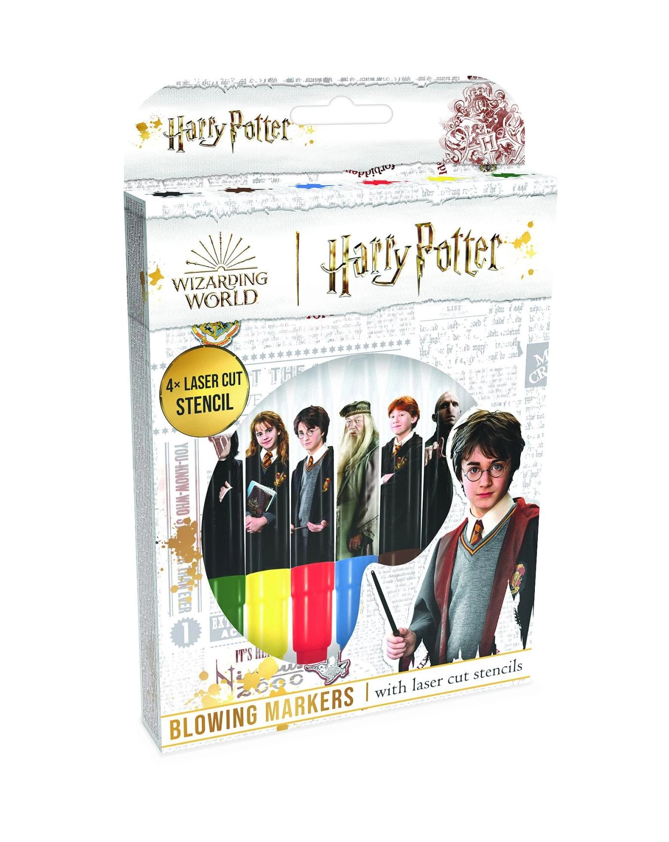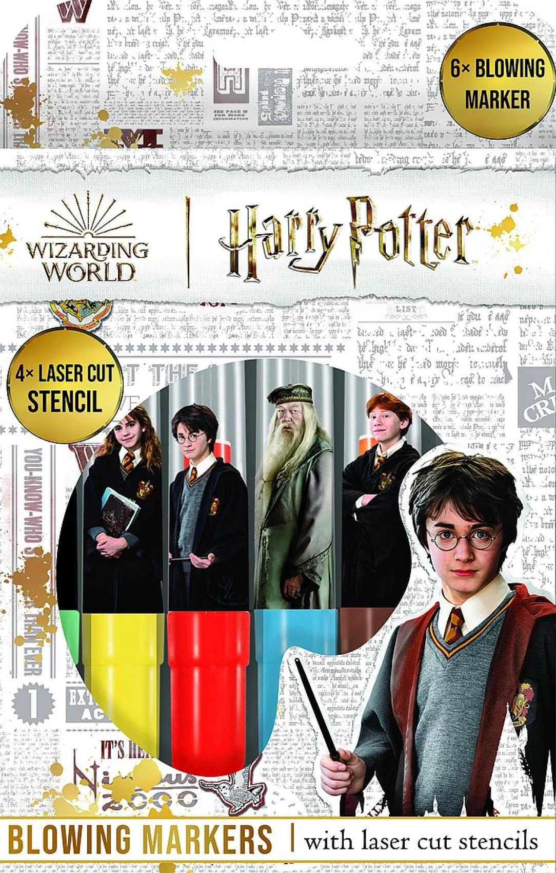 Descubre la diversión creativa con rotuladores de soplo y motivos oficiales de Harry Potter. Los niños crean fácilmente imágenes originales usando las plantillas incluidas y la sencilla técnica de soplado, que genera una fina pulverización tipo spray. Ideal para manualidades en casa, regalos y proyectos escolares.