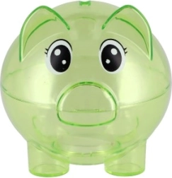 Te presentamos la hucha transparente con forma de cerdito, ¡no solo práctica sino también divertida! Este pequeño cerdito de 10 cm es el compañero perfecto para empezar a crear hábitos de ahorro.