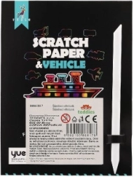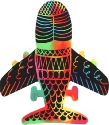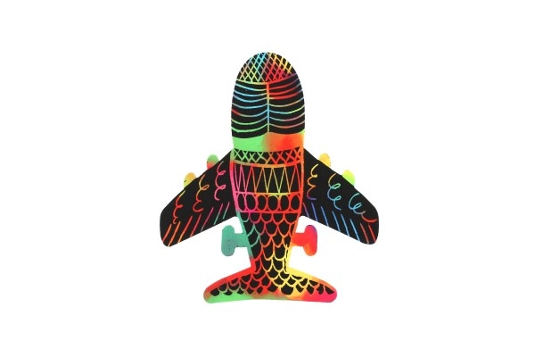 El set incluye 8 diseños para rascar diferentes, entre ellos avión, coche, tren y más.