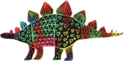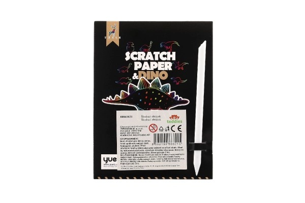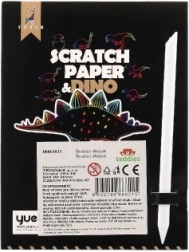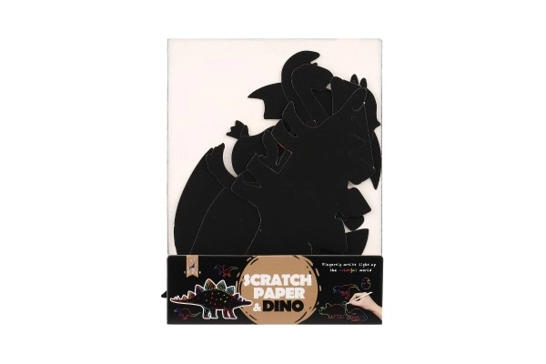 El set incluye 9 láminas para rascar con motivos de dinosaurios.