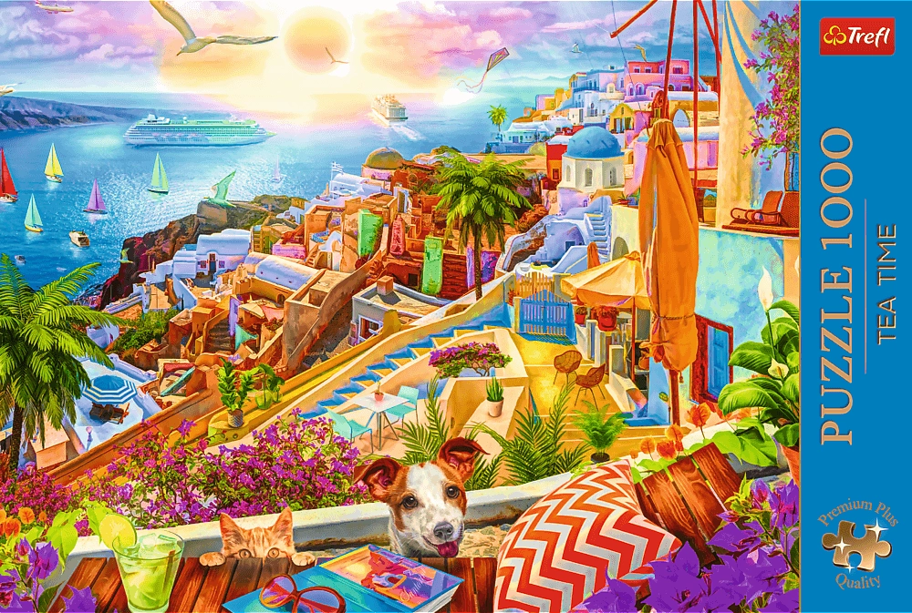 Disfruta de un momento de relax con la preciosa ilustración de Santorini del rompecabezas TREFL Premium Plus. La serie ofrece calidad superior, formas de piezas únicas, lámina de referencia incluida y certificación FSC para una diversión sostenible.