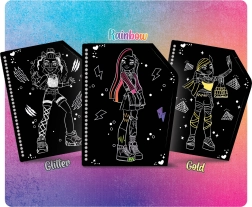 Entra en el mundo mágico de Monster High y crea con el bloc de dibujo rascable, donde al raspar la capa negra revelarás efectos dorado, brillante y arcoíris. El bloc ofrece 44 páginas llenas de diversión creativa.