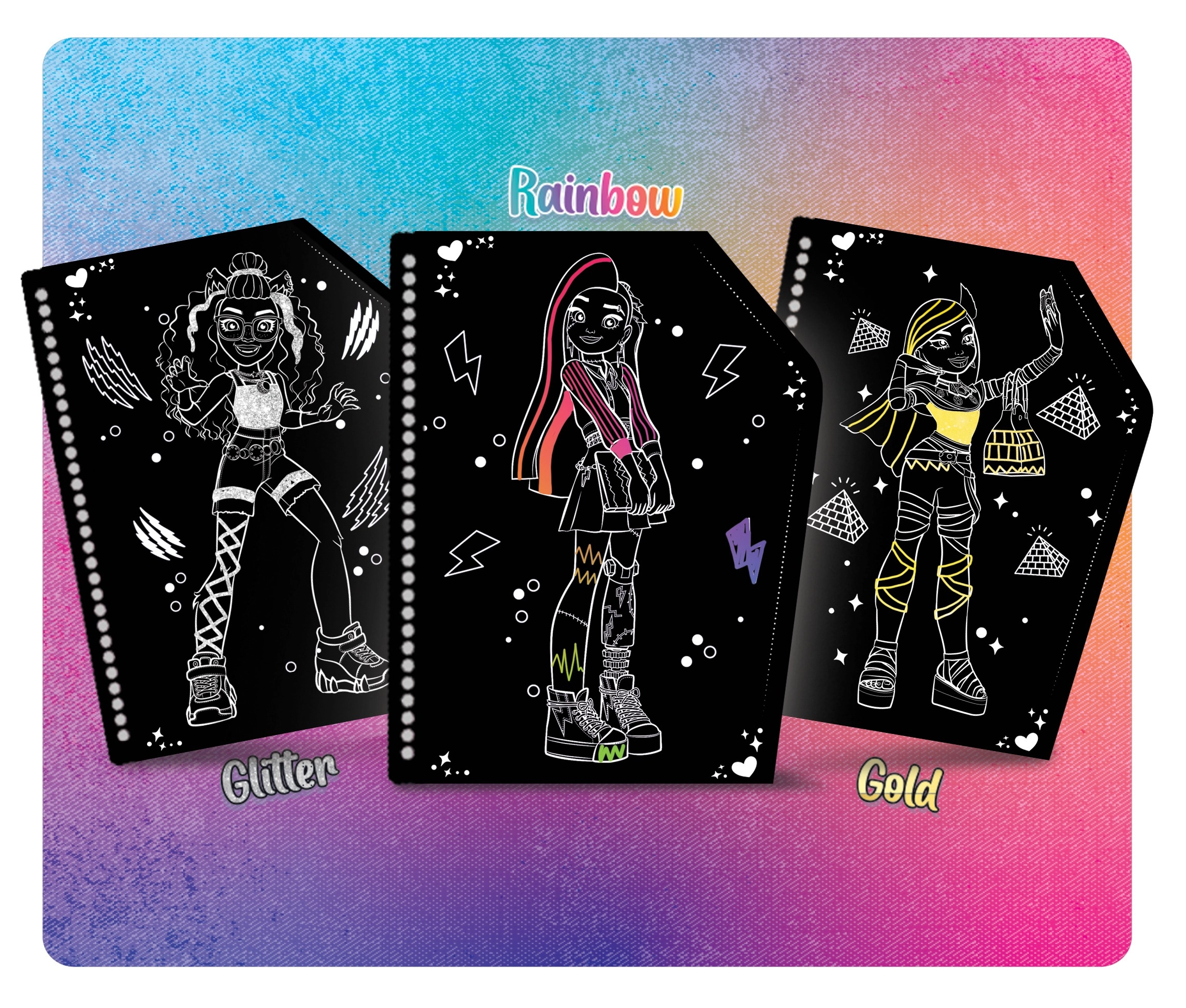 El bloc es ideal para niños y fans de Monster High que quieran desarrollar la creatividad y la motricidad fina. Los diferentes efectos de superficie —dorado, brillante y arcoíris— garantizan una paleta variada de resultados.