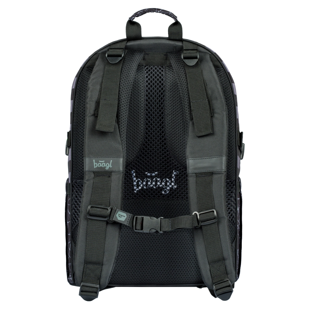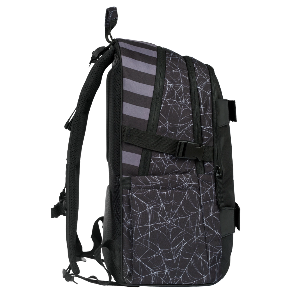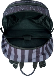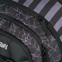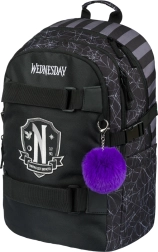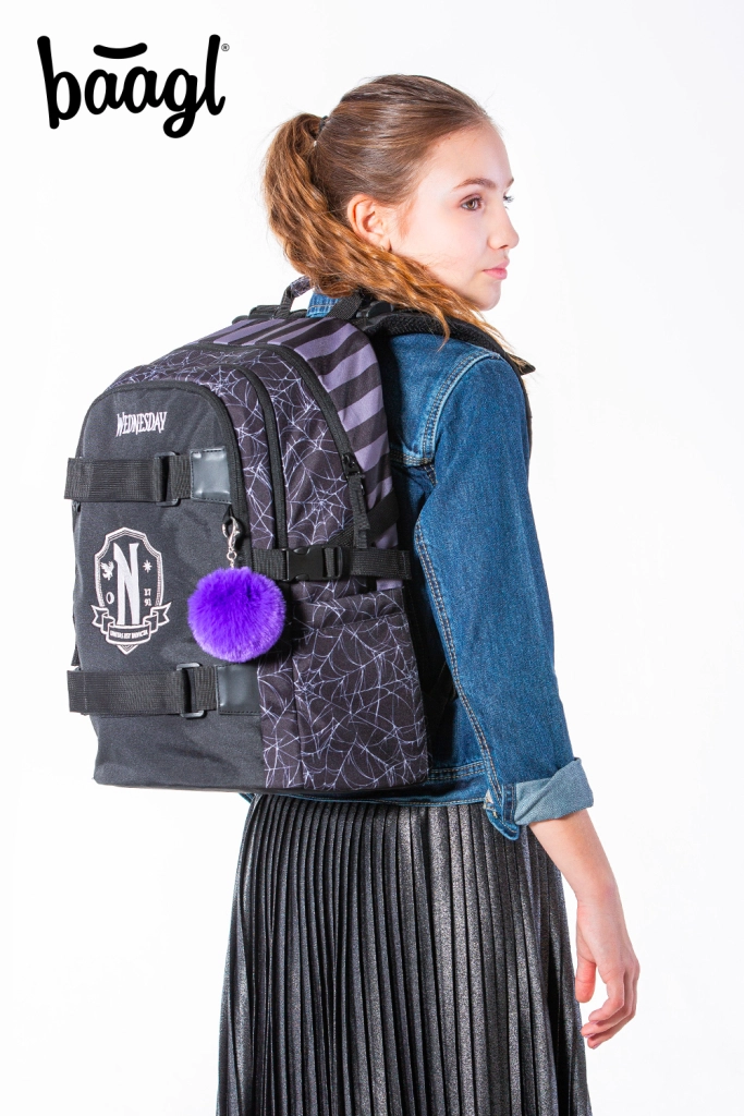 Descubre comodidad y funcionalidad en uno. Esta mochila de estilo oscuro con el motivo de Wednesday ofrece una distribución bien pensada: tres compartimentos independientes con organizador interno, un amplio bolsillo para portátil o tablet de 15" y bolsillos laterales resistentes adecuados para una botella de agua. Su bajo peso de 850 g y capacidad de 25 l garantizan que gestione fácilmente el material escolar diario.