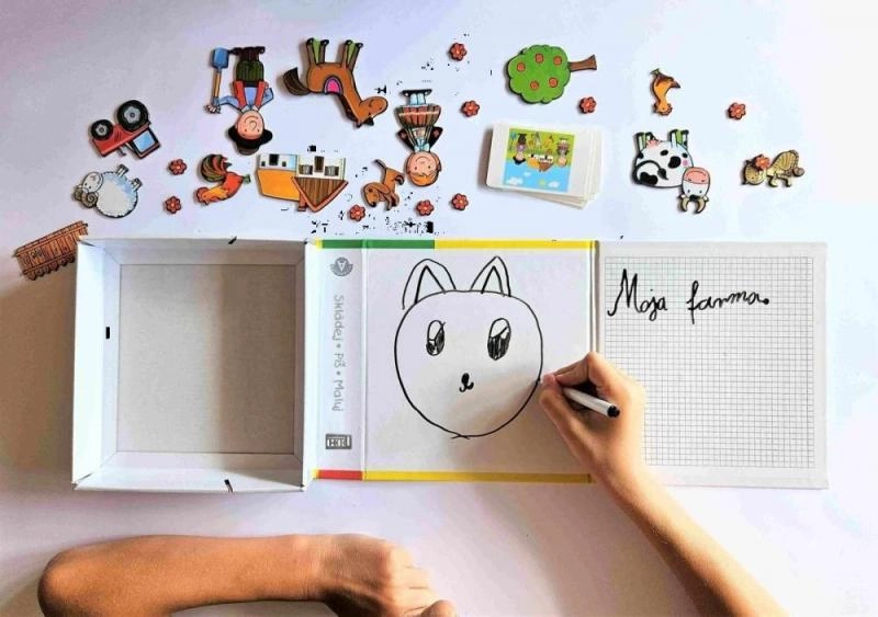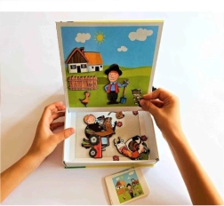 El juego motiva a los niños a narrar alegres historias de la granja, amplía su vocabulario y les conduce de forma natural a practicar la escritura de letras y números.