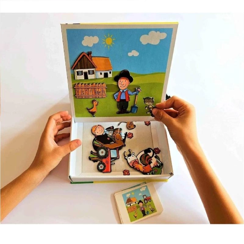 Este ingenioso set combina escritura, borrado y composición de imágenes magnéticas en un solo juego compacto. Los niños pueden practicar letras y números, dibujar con rotulador borrable y crear sus propias escenas de la granja. Gracias a los imanes, las piezas se adhieren bien a la base, lo que lo convierte en una diversión ideal tanto para el coche como para casa.