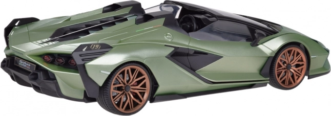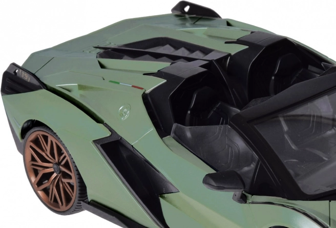 Siliceta deportiva, detalles precisos e iluminación efectiva: delanteras blancas al avanzar y traseras rojas al retroceder. El modelo reproduce fielmente el carácter del LAMBORGHINI SIÁN.