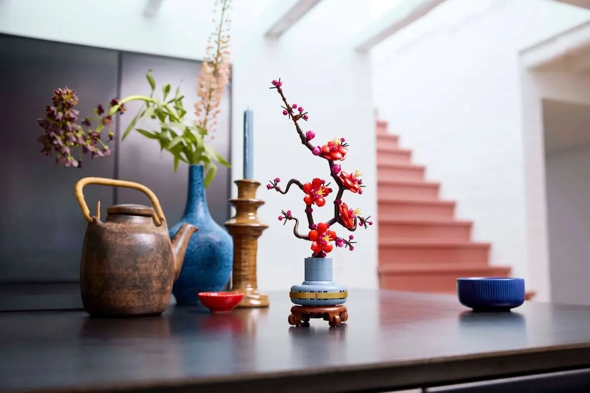 Descubre la calma y la creatividad con el set para adultos LEGO Icons Flor de ciruelo. Un bonsái elegante con flores rojo intenso y rosas, rama leñosa y maceta azul pastel con borde dorado que es una decoración con estilo y sin mantenimiento para el hogar o la oficina, y un regalo ideal para amantes de las flores.