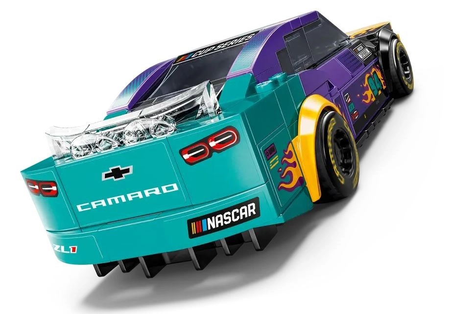 Disfruta de la emoción del mundo NASCAR con el fantástico modelo LEGO Speed Champions NASCAR Next Gen Chevrolet Camaro ZL1. El modelo, en colores vibrantes con calcomanías de llamas, reproduce fielmente el coche real de competición e incluye los logotipos de Camaro, NASCAR y Cup Series. No faltan detalles funcionales que encantarán tanto a pequeños constructores como a coleccionistas adultos.