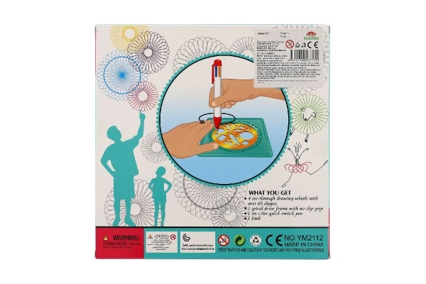 Cuatro plantillas circulares con decenas de formas permiten crear combinaciones infinitas de figuras espirales y mandalas, desde las más sencillas hasta las más complejas.