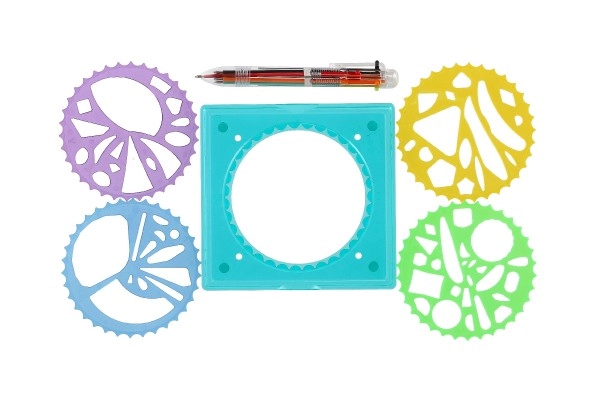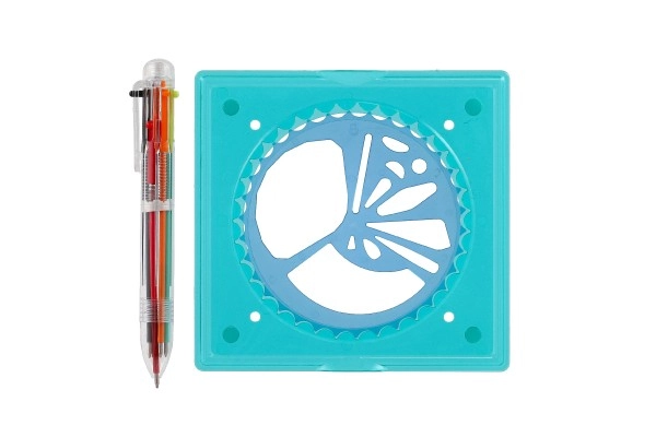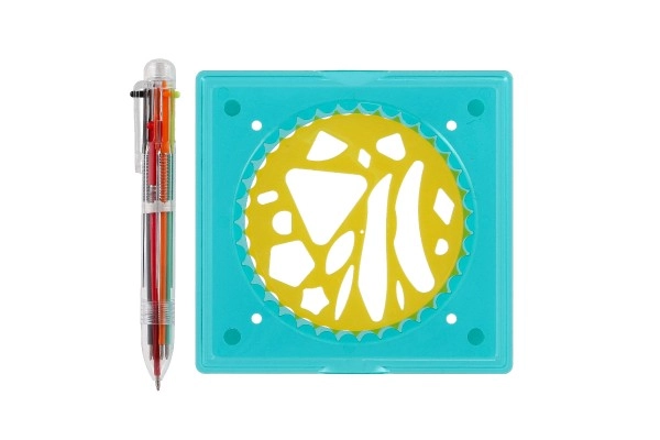 Con este set Inspiro crearás asombrosos patrones en espiral, mandalas y dibujos geométricos únicos. Combina diferentes ruedecillas y repite motivos tantas veces como quieras: el resultado será siempre original y colorido. Gracias al bolígrafo de seis colores, resaltarás detalles fácilmente y aportarás dinamismo a las figuras.