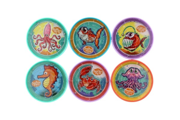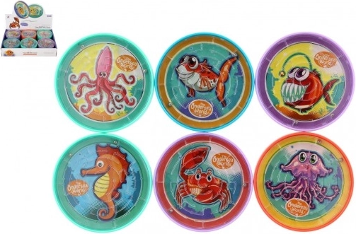 El laberinto circular de bolas con adorables ilustraciones de criaturas marinas ofrece una rápida dosis de diversión en cualquier momento y lugar. Basta con inclinar suavemente y conducir la bola desde el borde hasta el centro y de vuelta. El juego desarrolla de forma excelente la motricidad fina, la coordinación ojo–mano y el pensamiento estratégico.