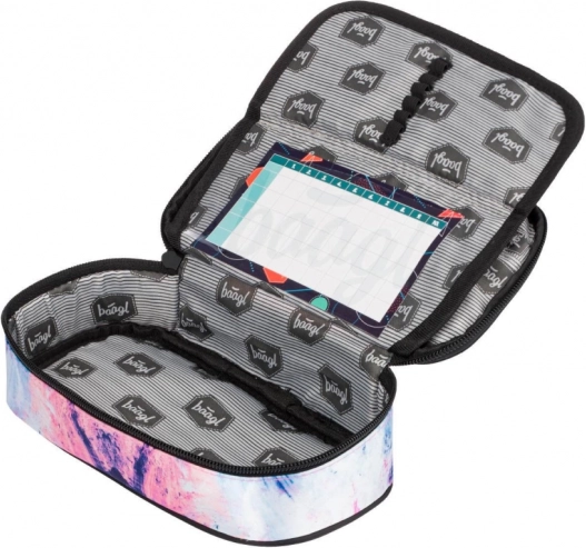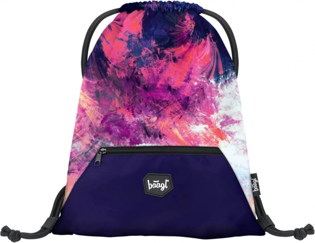 Elegante set escolar para niñas BAAGL Abstract que incluye una mochila espaciosa de tres compartimentos, una práctica bolsa para la espalda y un estuche rígido. Ofrece espalda ergonómica, amplia organización, elementos reflectantes y materiales resistentes en un moderno diseño violeta‑rosa con detalles. Ideal a partir de 3.º de Primaria.