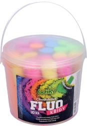 - El set incluye 20 uds de tizas fluorescentes en un práctico cubo.