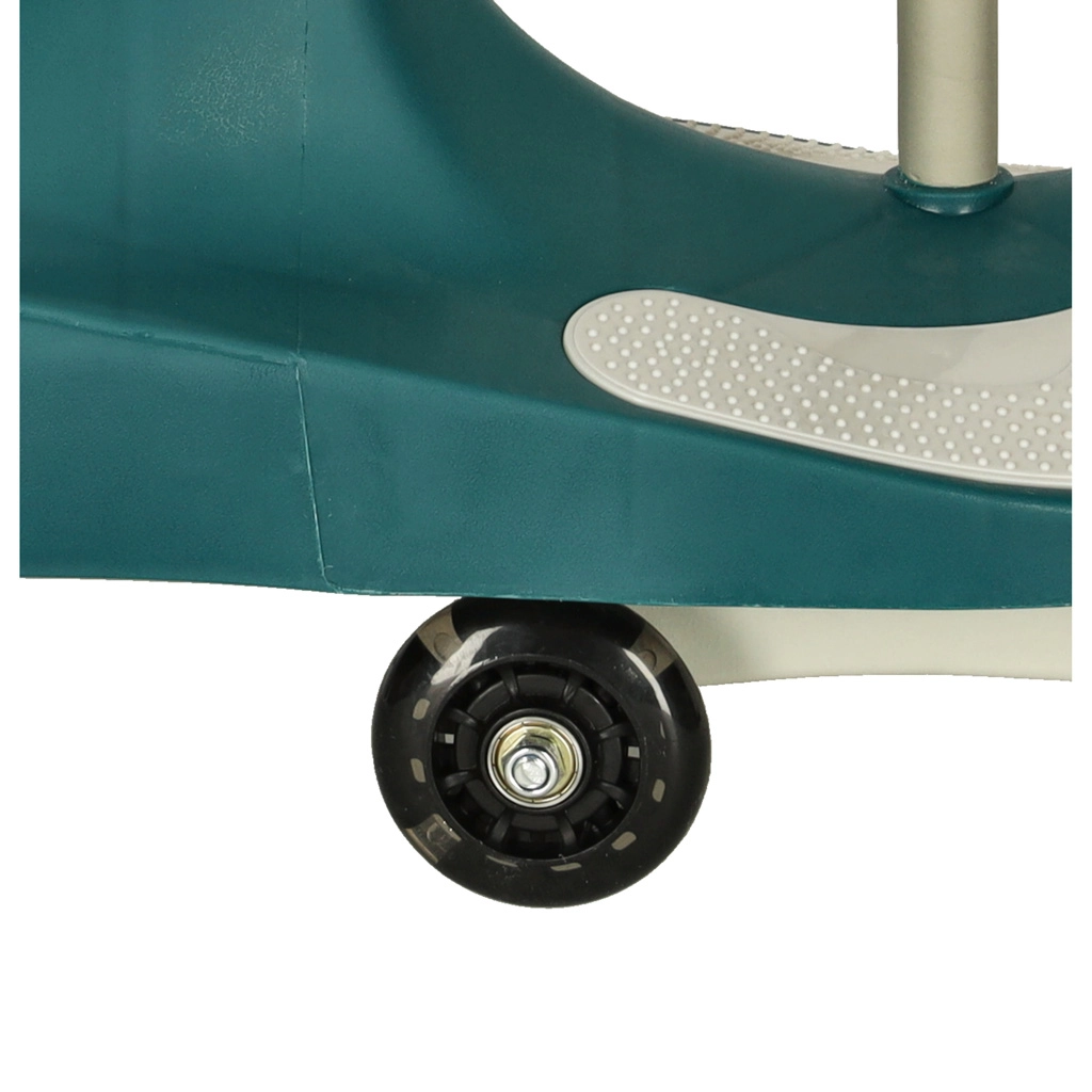 Las ruedas traseras, ampliamente separadas, mejoran la estabilidad y ayudan a evitar vuelcos. Las ruedas con diodos LED resultan atractivas para los niños y, al mismo tiempo, su superficie de caucho es más amable con los suelos. La resistente estructura de plástico soporta el uso diario y ofrece horas de diversión segura.