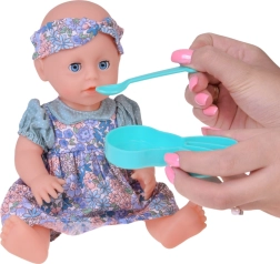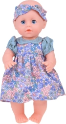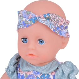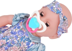 Al acostarla, la muñeca cierra los ojos, lo que aporta mayor realismo al juego. Las extremidades y la cabeza móviles facilitan el cambio de ropa y permiten múltiples escenarios de juego. El elegante conjunto floral con diadema y braguitas se complementa con variados accesorios para alimentar y calmar.