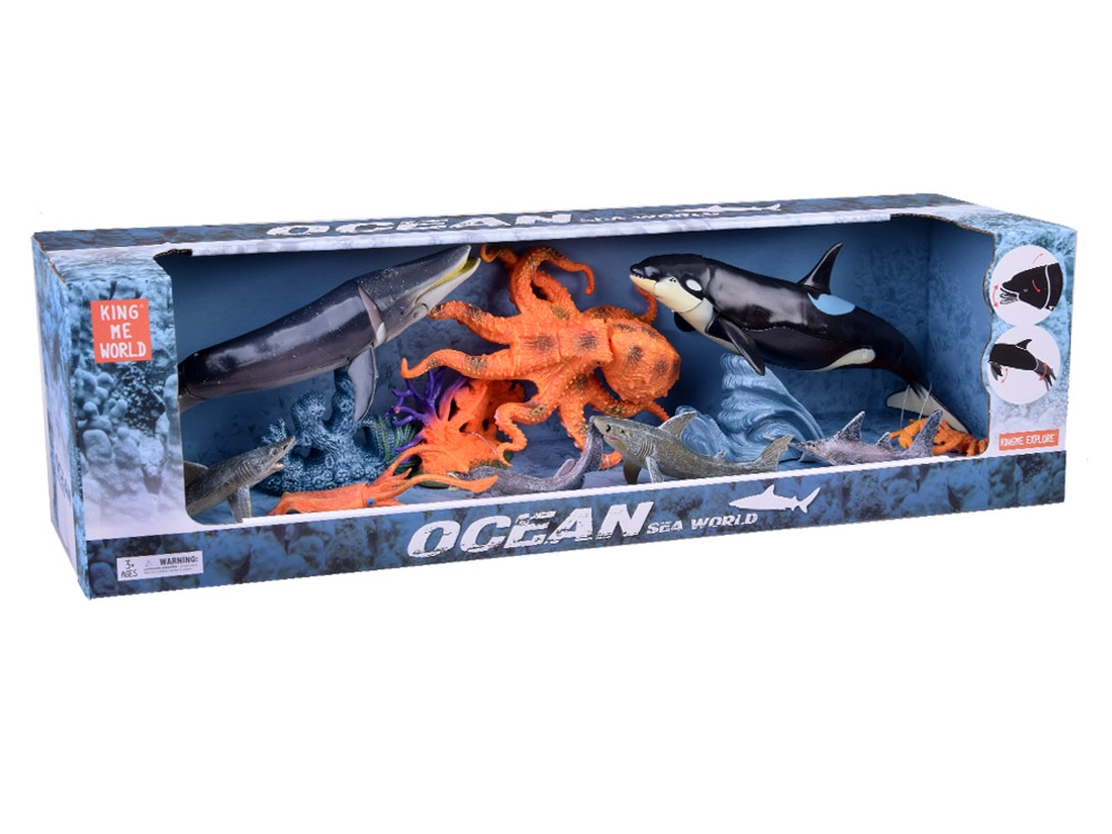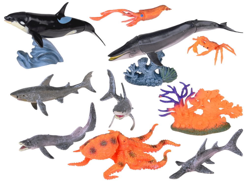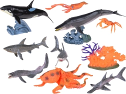 El set incluye diferentes tipos de criaturas marinas, como ballena, pulpo, orca, tiburón y más.