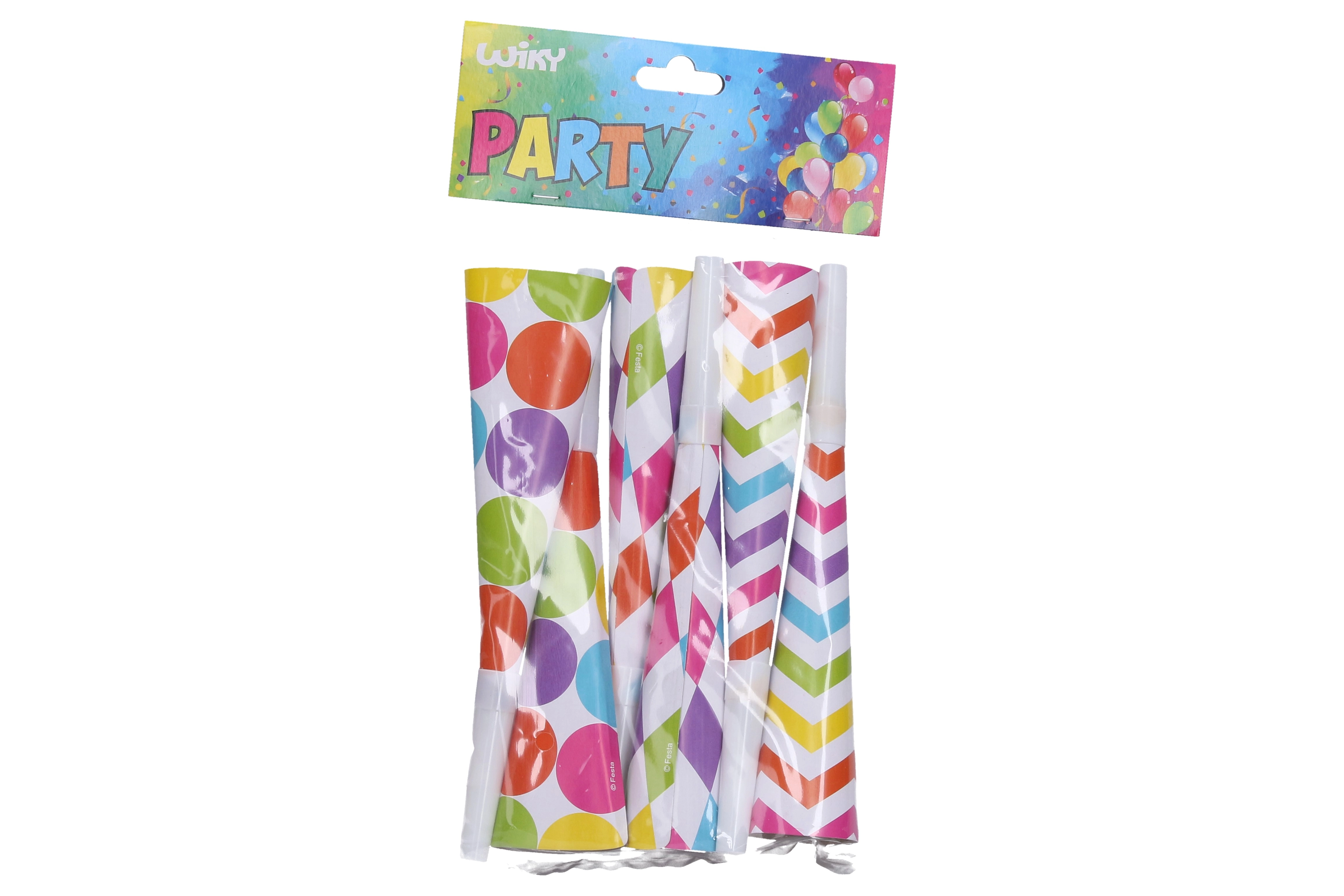 - El paquete incluye 6 trompetillas, ideal para fiestas pequeñas y grandes.