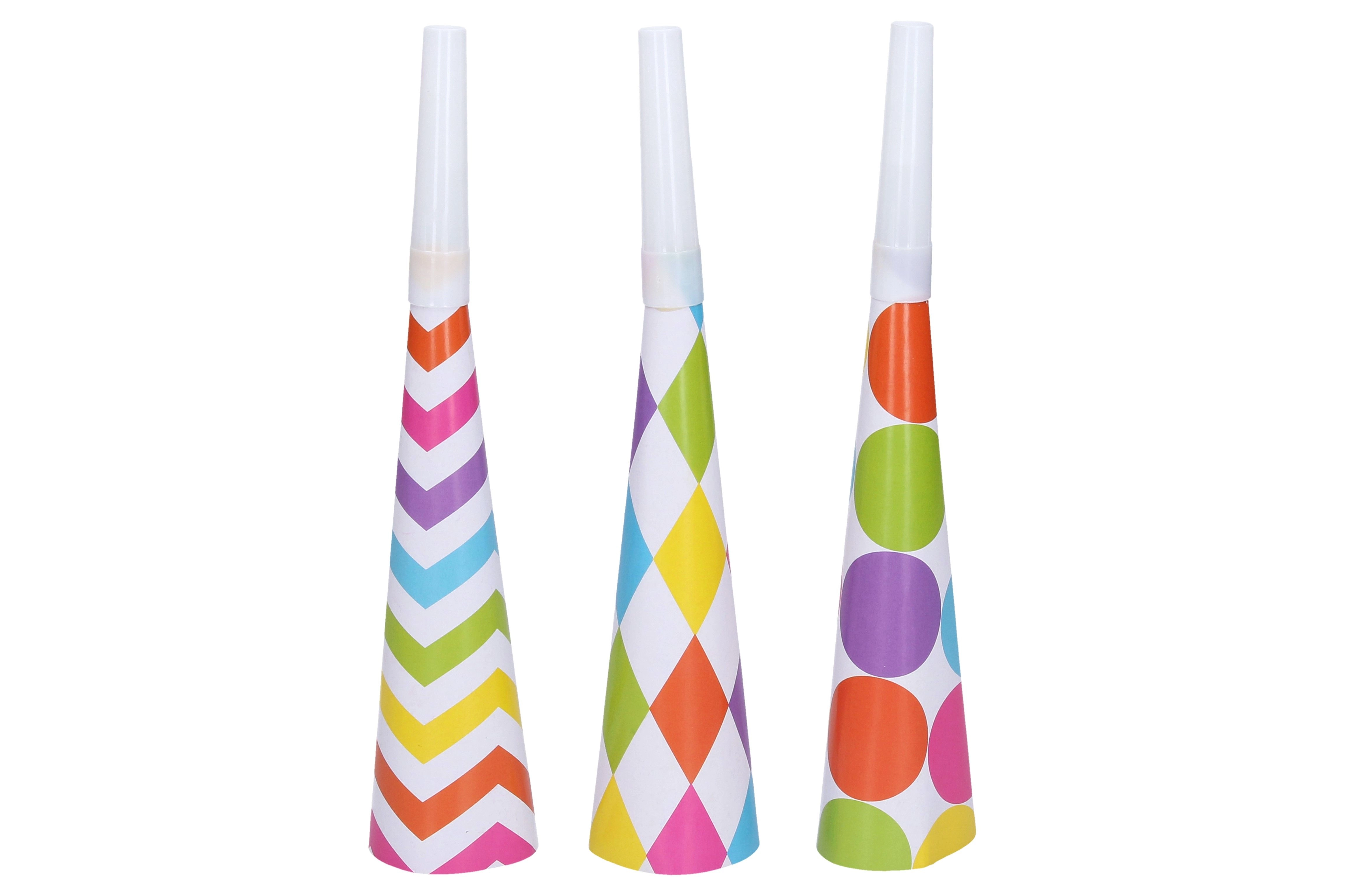 Decora tu fiesta con estas coloridas trompetillas y aporta más encanto y alegría. Perfectas para cumpleaños, onomásticas u otras ocasiones especiales.