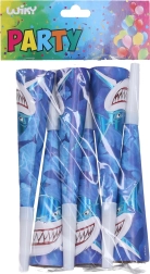 Aporta el ambiente perfecto a cualquier fiesta con estas trompetillas de fiesta con motivo de tiburón. Gracias a su longitud de 20 cm, se sujetan bien incluso para los más pequeños y son muy fáciles de usar: basta con soplar y que empiece la diversión.