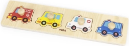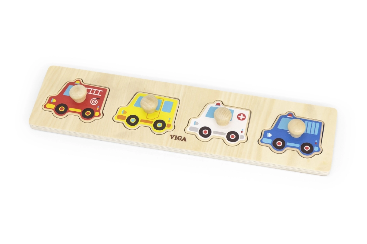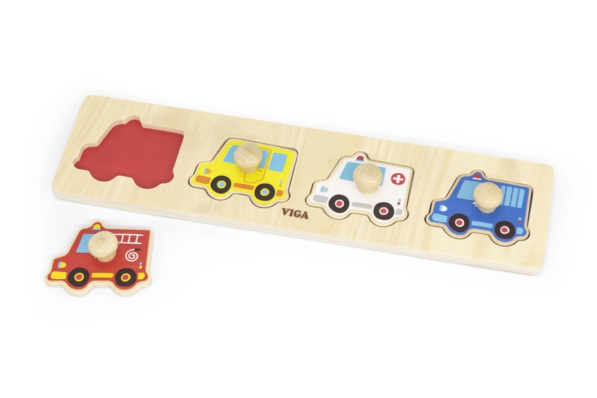 Este encaje de madera de calidad con cuatro vehículos (camión de bomberos, taxi, ambulancia y coche de policía) es una gran elección para los primeros juegos de lógica. Las piezas con prácticos pomos facilitan la manipulación y animan a los niños a encajar y explorar una y otra vez.