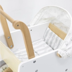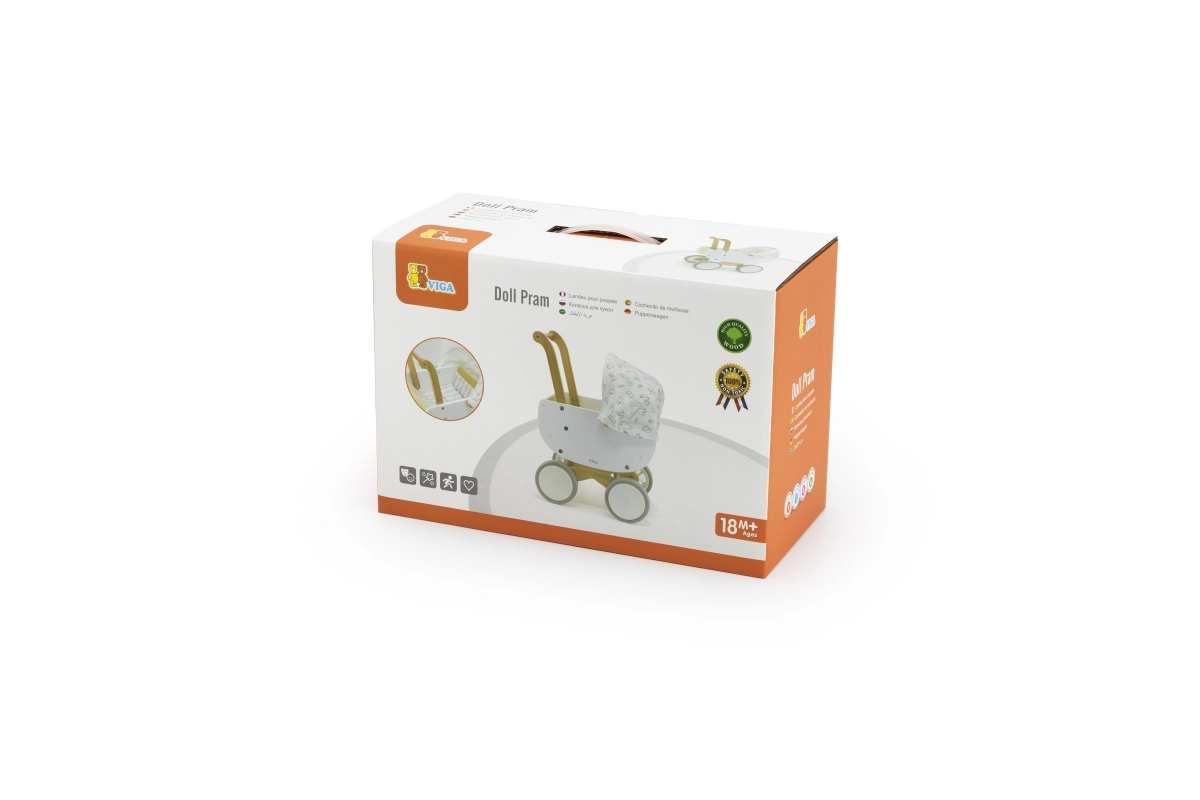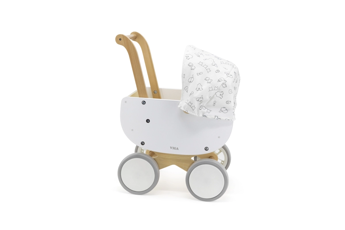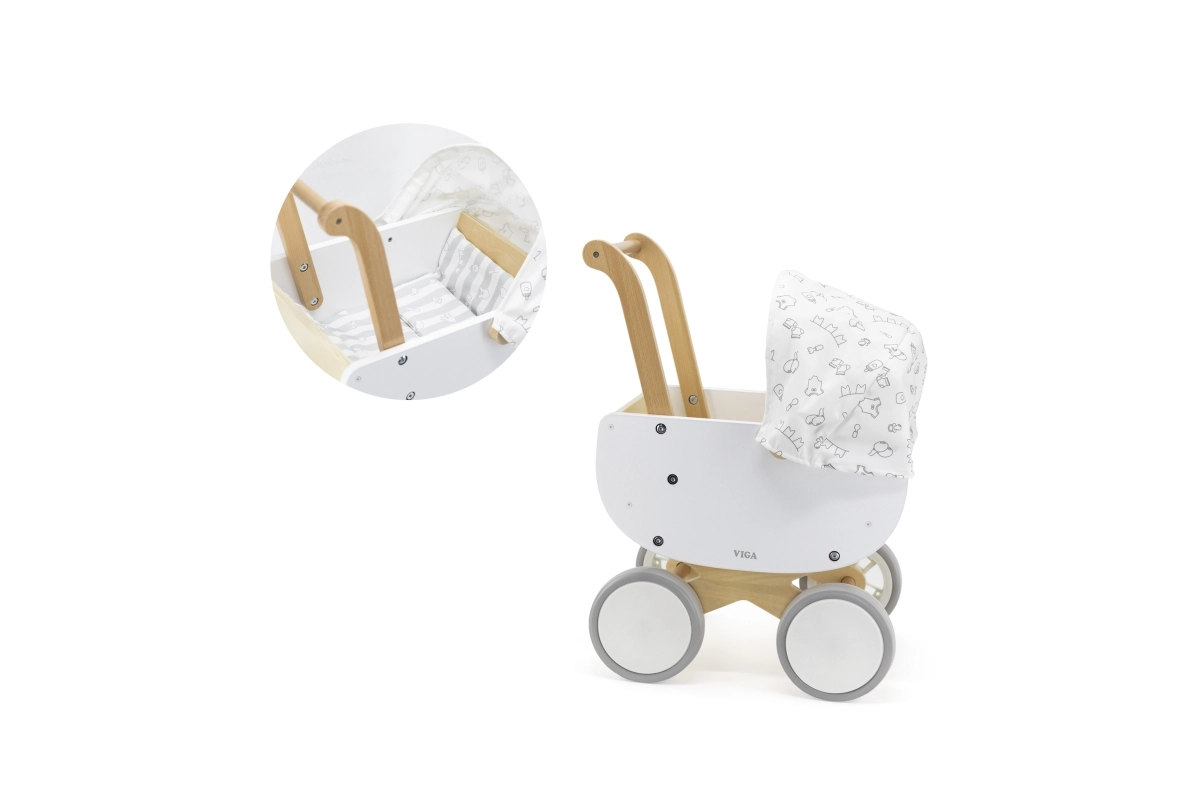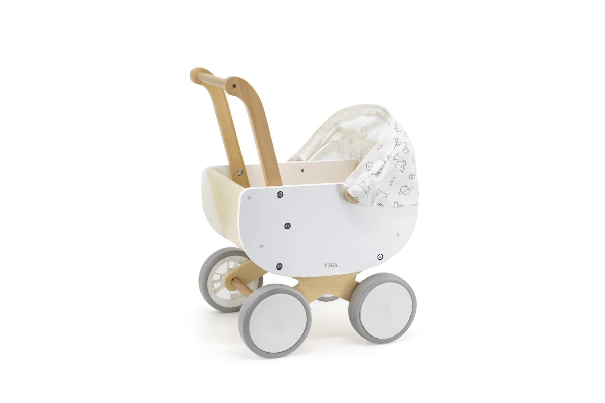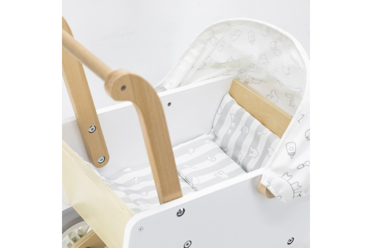 El carrito de madera Viga es una elección ideal para los primeros pasos en el mundo del cuidado de muñecas. Combina una estructura de madera robusta con bordes lisos y ruedas EVA antideslizantes, para que el juego sea seguro y fluido en diferentes superficies. Los colores claros y la capota textil con un patrón sutil aportan un estilo limpio y moderno.