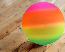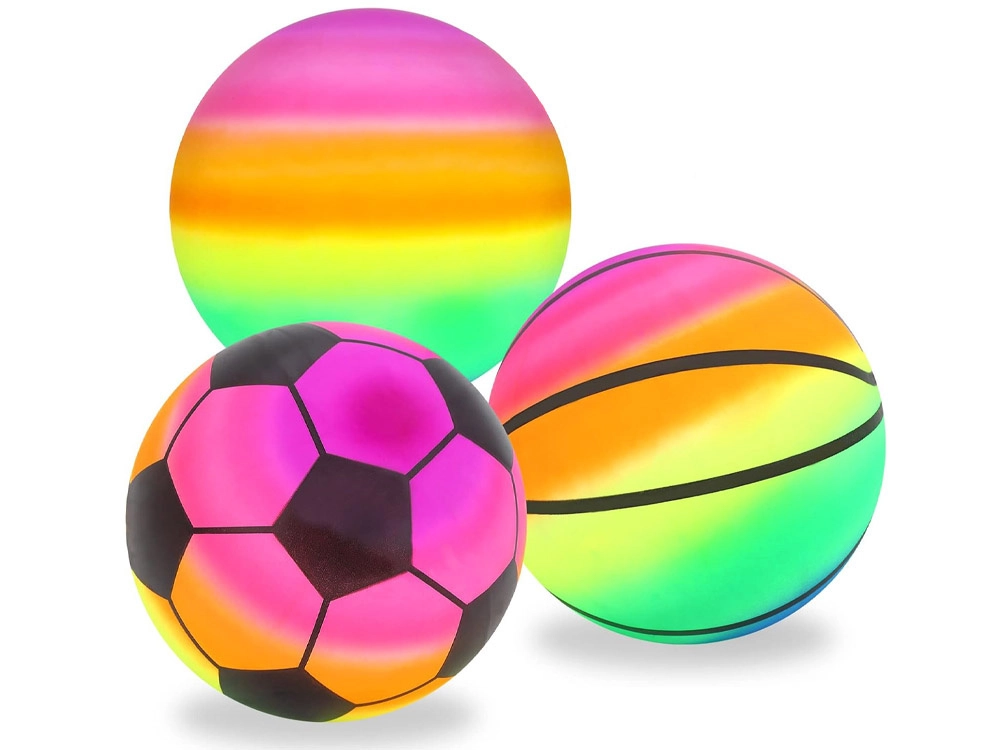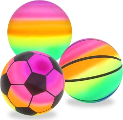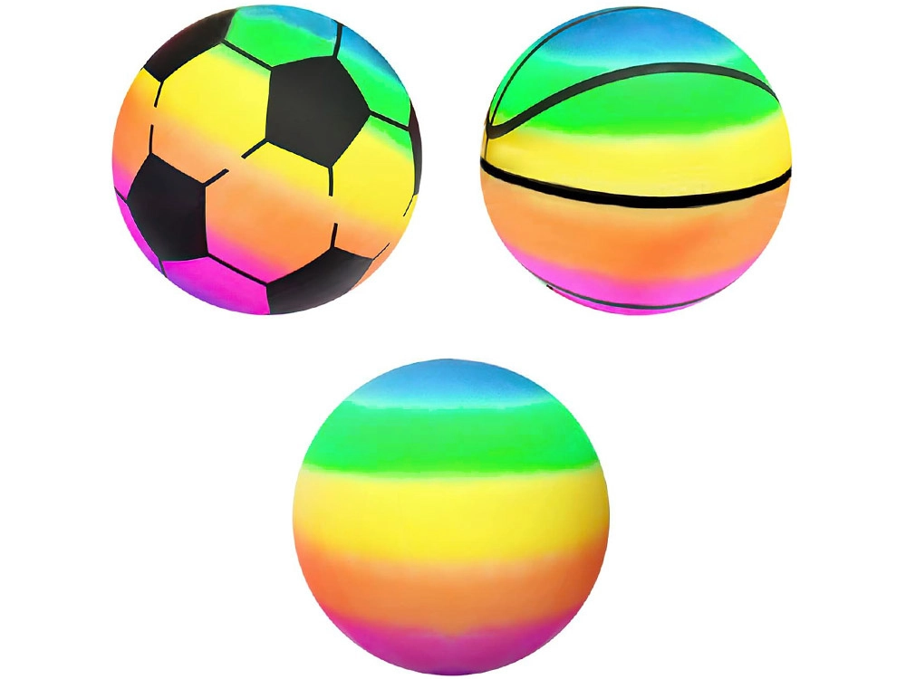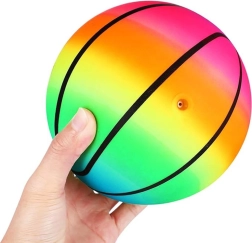 La pelota de goma para niños con un diámetro de aproximadamente 23 cm es ideal para el juego diario en el patio, el jardín, la escuela o en vacaciones. Gracias a su estructura ligera se lanza y se atrapa con facilidad; los colores arcoíris garantizan excelente visibilidad y diversión en movimiento. El material es impermeable, por lo que podrás disfrutar con la pelota también cerca del agua o en la piscina.