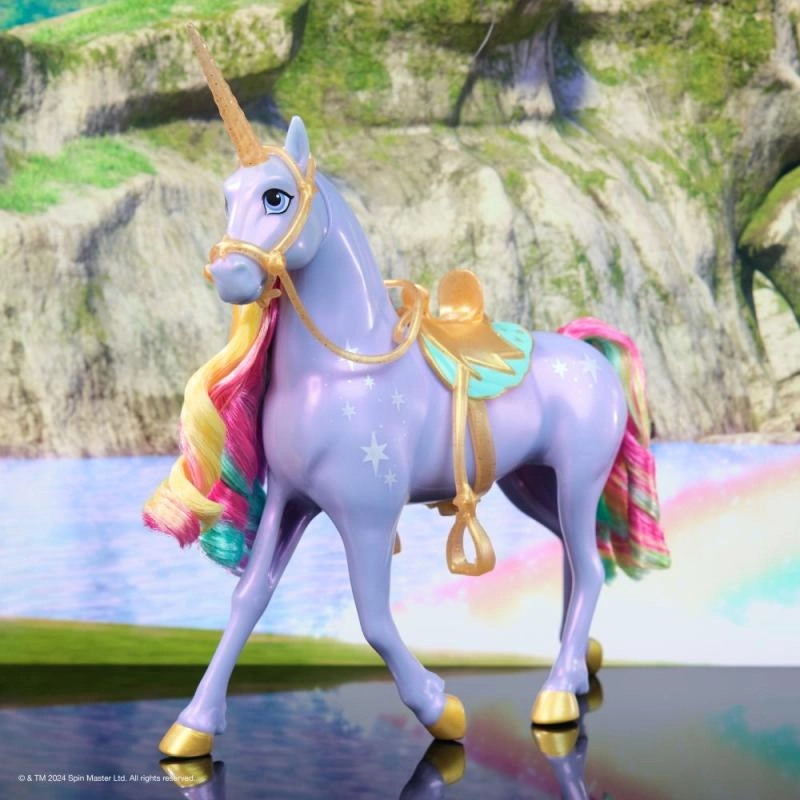 El unicornio luminoso Polar de 28 cm está inspirado en la serie animada de NETFLIX y en la exitosa serie de libros. Este unicornio interactivo reacciona al tacto con luces arcoíris, efectos de sonido y canciones del programa.
