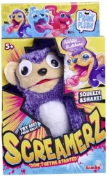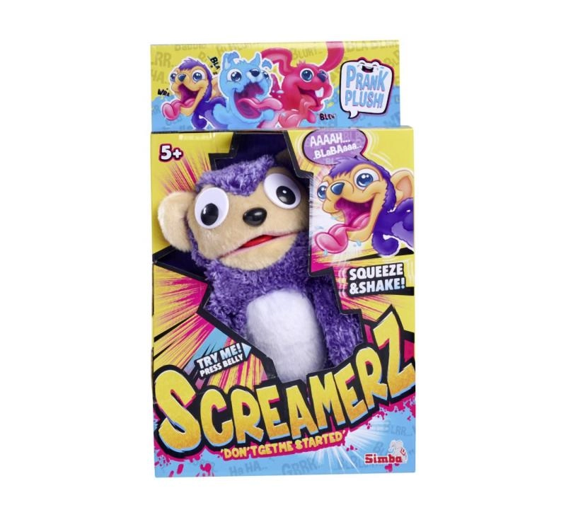 Bienvenido al mundo de ScreamerZ, divertidos monos de peluche morados con ojos alocados que encantarán a niños y adultos. Con cada presión en la barriguita, tu nuevo juguete favorito emite sonidos adorables y, con otra pulsación, empieza a gritar de alegría.