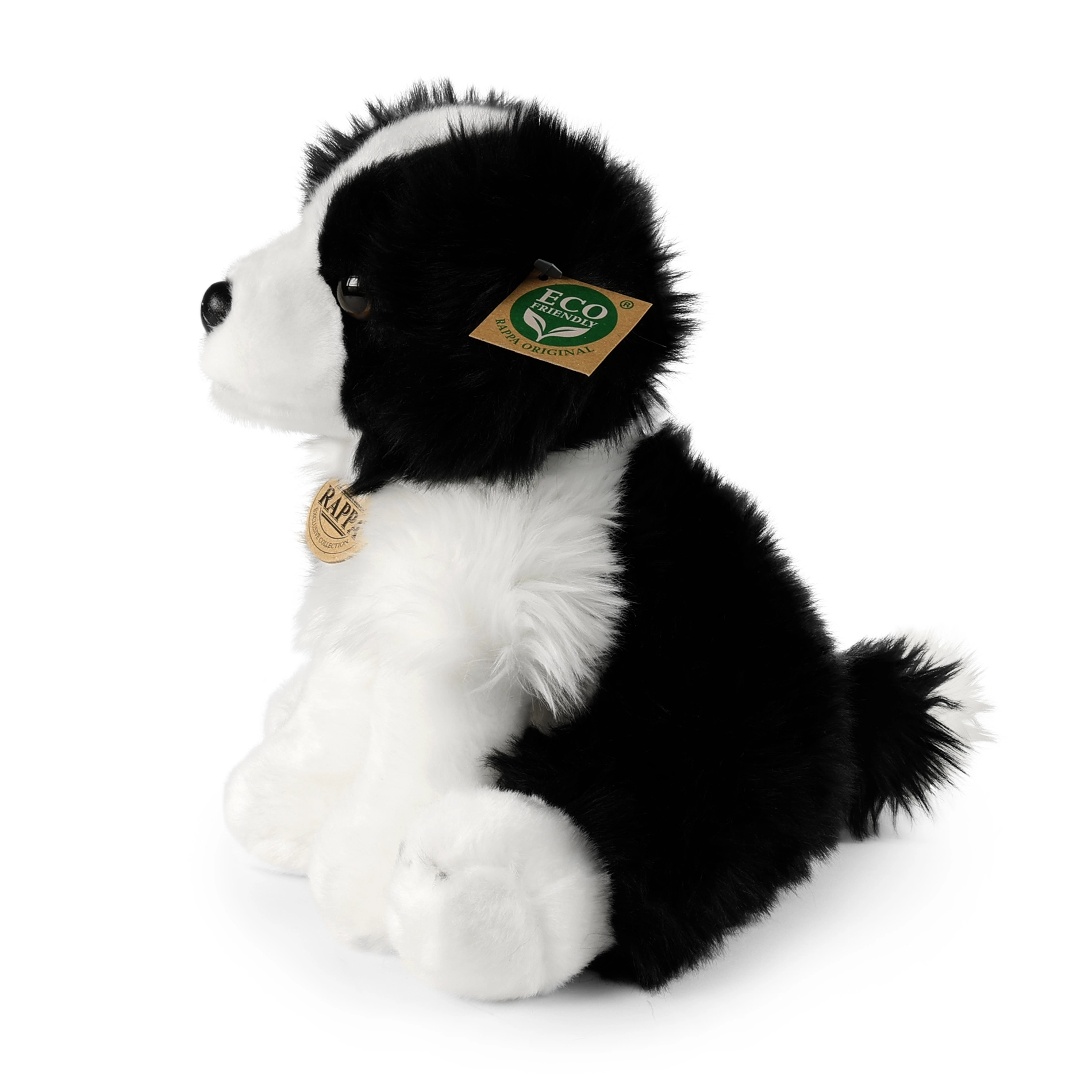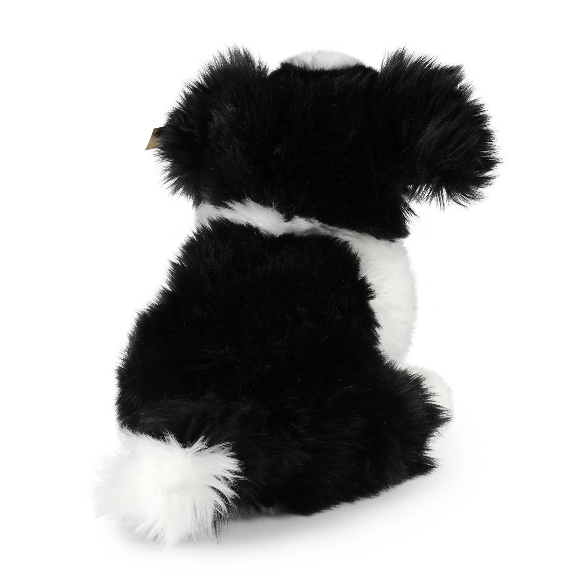 El detallado colorido en blanco y negro y el pelaje muy suave hacen de este border collie de peluche un compañero fiel y mimoso.