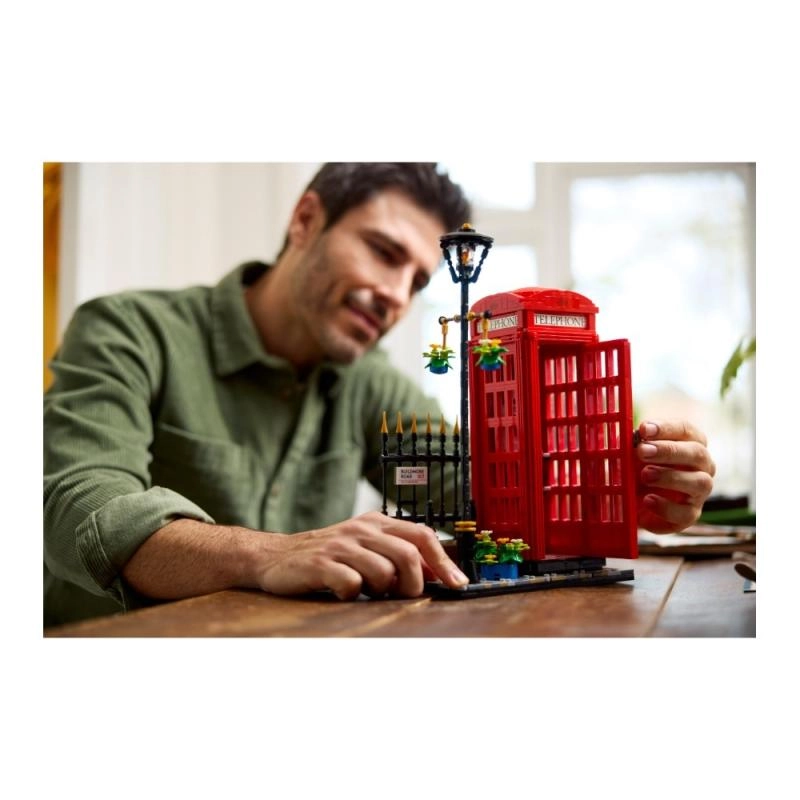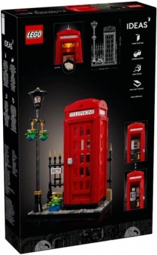 LEGO Ideas Cabina Telefónica Roja de Londres es un set de construcción creativo que representa fielmente la clásica cabina telefónica británica K2. El modelo incluye un ladrillo de luz LEGO para iluminar el interior, lo que aporta una atmósfera auténtica. Con la posibilidad de elegir entre un teléfono retro o de estilo años 80, puedes personalizar el interior según tus preferencias.