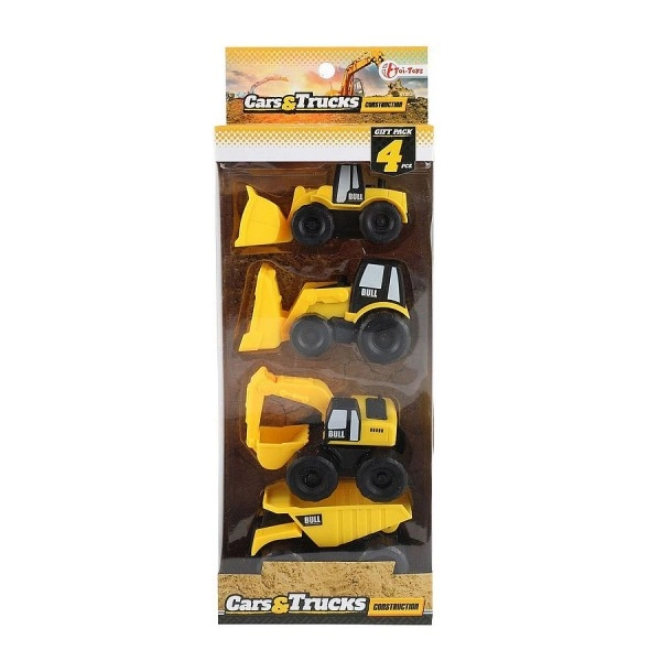 El set contiene cuatro vehículos de construcción diferentes que fomentan el desarrollo de la imaginación de los niños.
