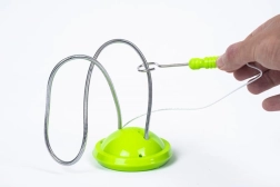 El juego consiste en usar una varilla con un aro, que debes guiar a lo largo del recorrido metálico sin que toque el alambre. Diversión garantizada para todas las edades, ya sea en casa o de viaje.