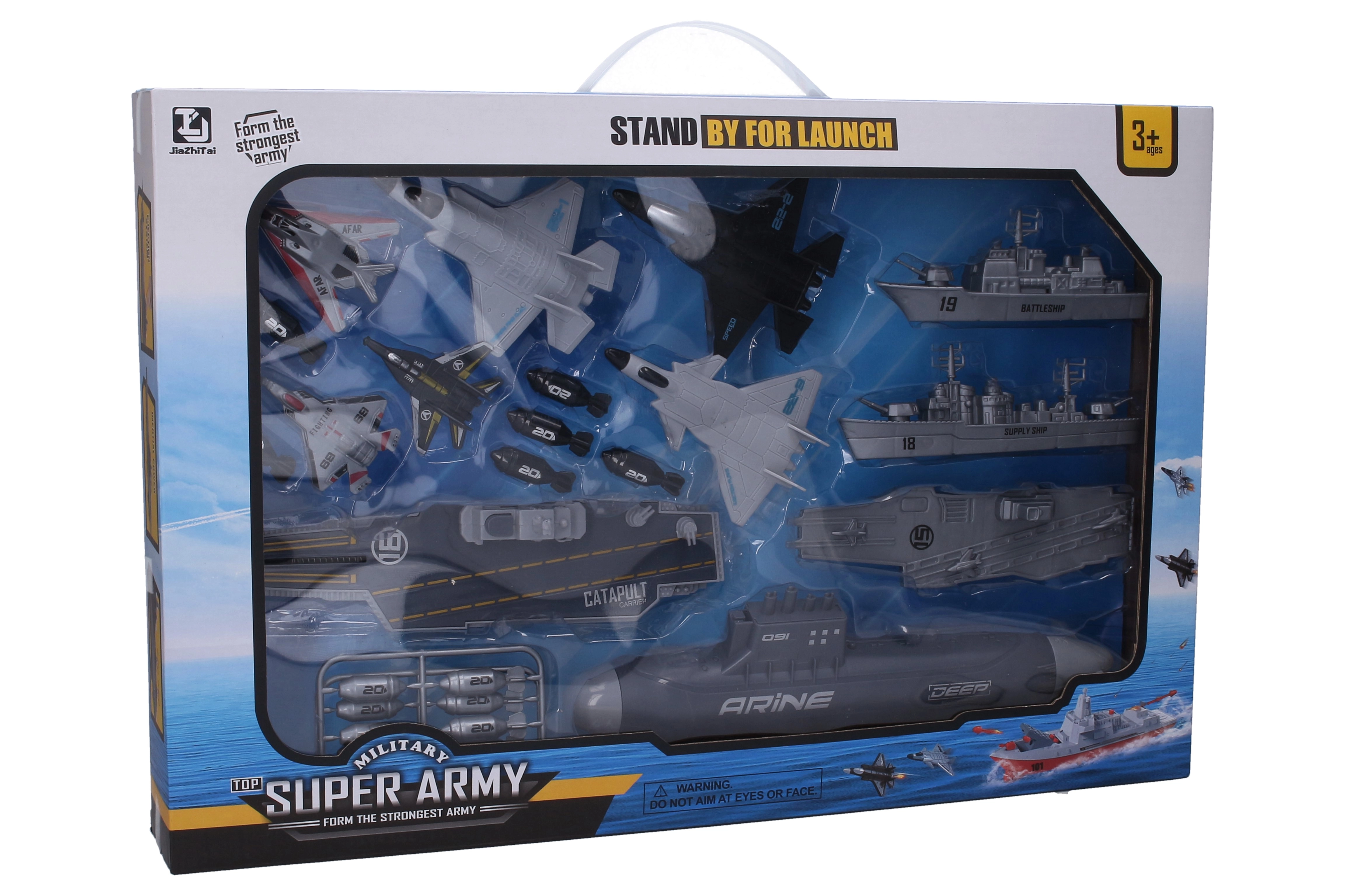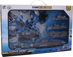 La catapulta permite lanzar los cazas directamente a la acción con una enérgica pulsación del botón en la torre. El submarino te incorpora al combate gracias a la posibilidad de disparar torpedos. ¡Este juguete ofrece infinitas posibilidades de juego para pequeños y grandes entusiastas navales!