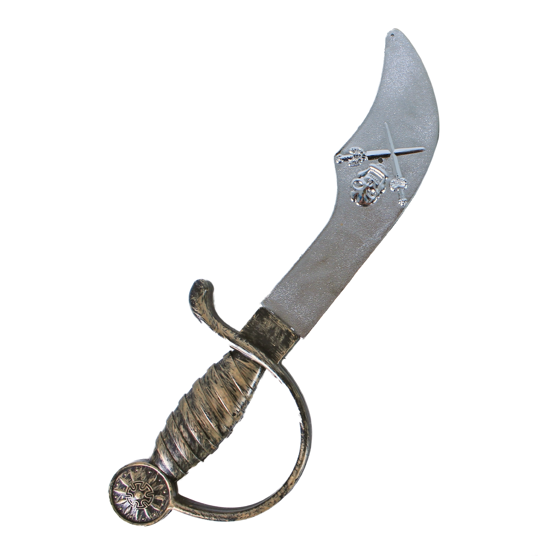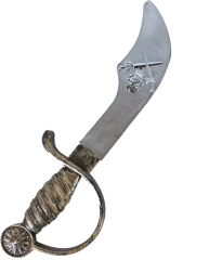 Ligera espada de plástico al estilo sable pirata con empuñadura detallada. Un complemento perfecto para disfraces y aventuras diarias.