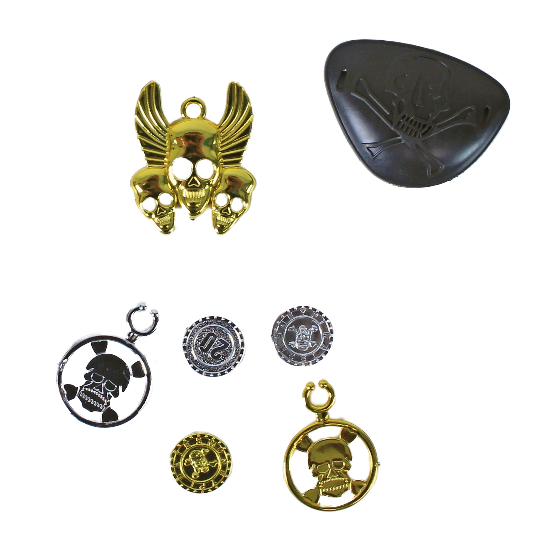 El set incluye colgantes y fichas con símbolos piratas con aspecto “metálico” para una experiencia de juego aún más auténtica.