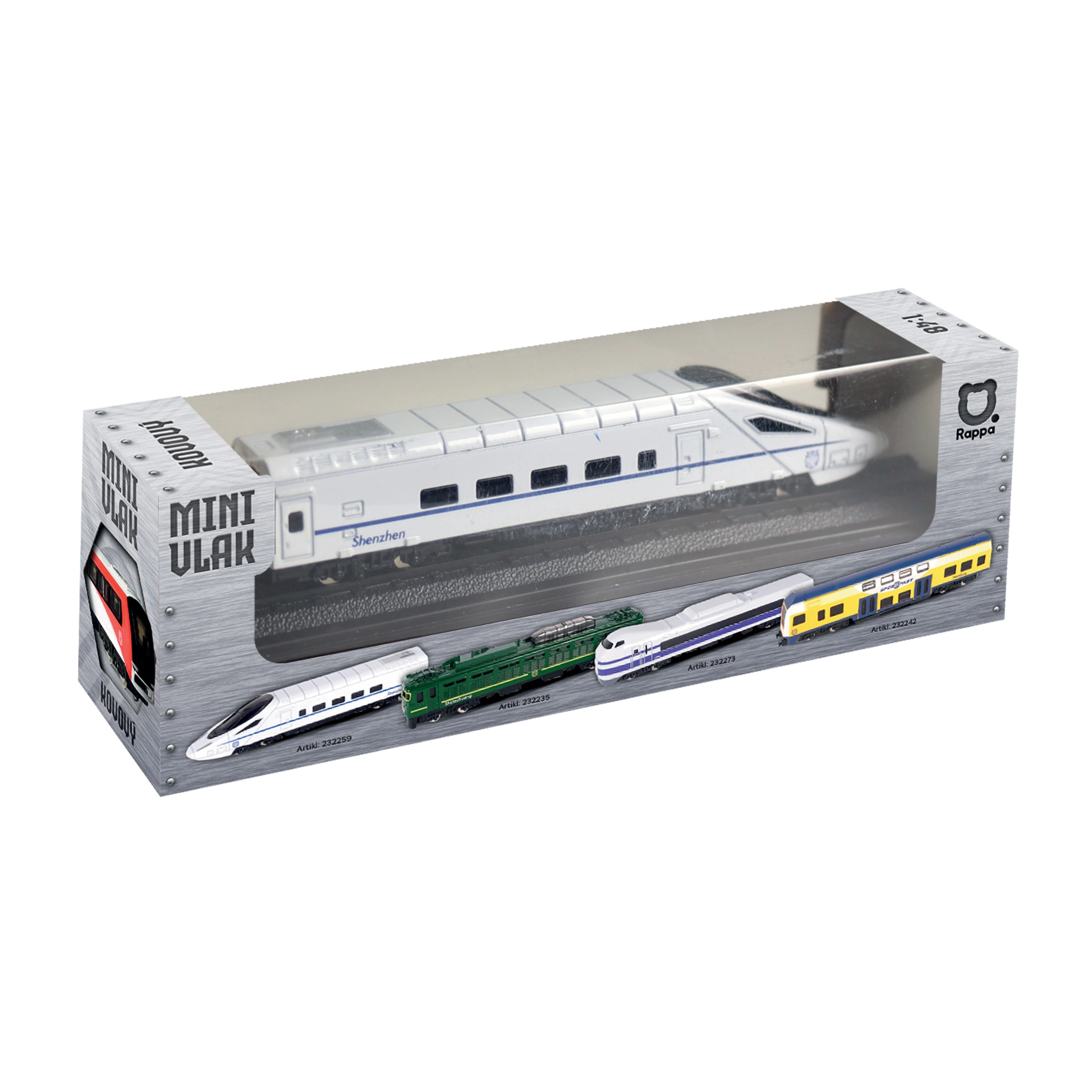 El modelo de 15 cm en escala 1:48 es perfecto tanto para juegos infantiles como como elemento decorativo para amantes de los trenes modernos. El cuerpo metálico garantiza una mayor vida útil, mientras que los detalles de plástico aportan el aspecto realista del tren de alta velocidad.